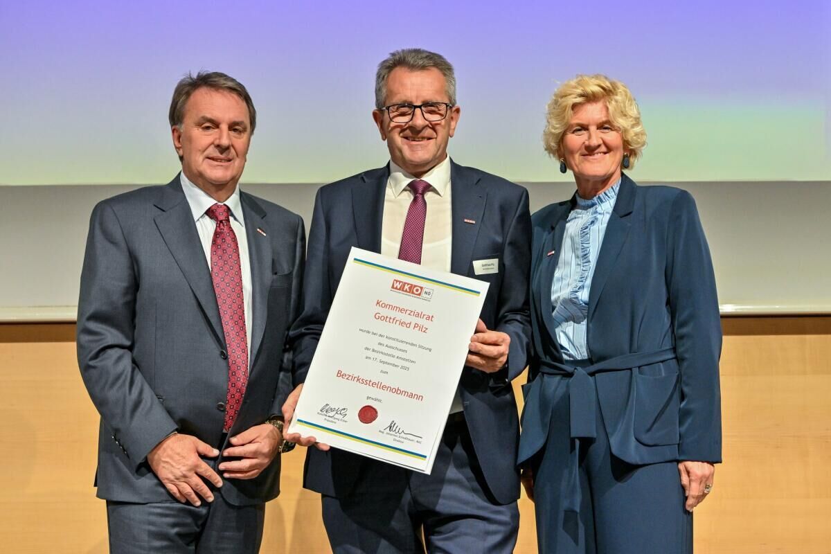 AMSTETTEN. Die regionale Wirtschaftsvertretung im Bezirk Amstetten hat sich neu formiert. Bei der konstituierenden Sitzung des Bezirksstellenausschusses wurde Gottfried Pilz für weitere fünf Jahre als Obmann der Wirtschaftskammer-Bezirksstelle bestätigt. Der Unternehmer führt dieses Amt seit 2019.