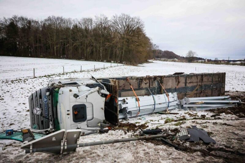 Lastwagen kam von der Lamprechtshausener Straße ab und stürzte um