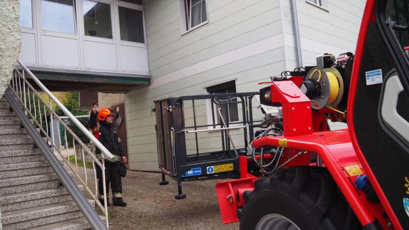 Eine Frau war in ihrer Wohnung in der Apothekergasse gestürzt und konnte die Eingangstüre zu ihrer Wohnung nicht mehr selbständig öffnen. Das Rote Kreuz forderte daher die Unterstützung der Feuerwehr nach. Die Florianis konnten unter Zuhilfenahme der Arbeitsbühne des Teleskopladers ein Fenster im ersten Obergeschoss öffnen und sich so Zugang zur Wohnung der Verunfallten machen. Danach übernahm die Rettung die Versorgung der Frau.