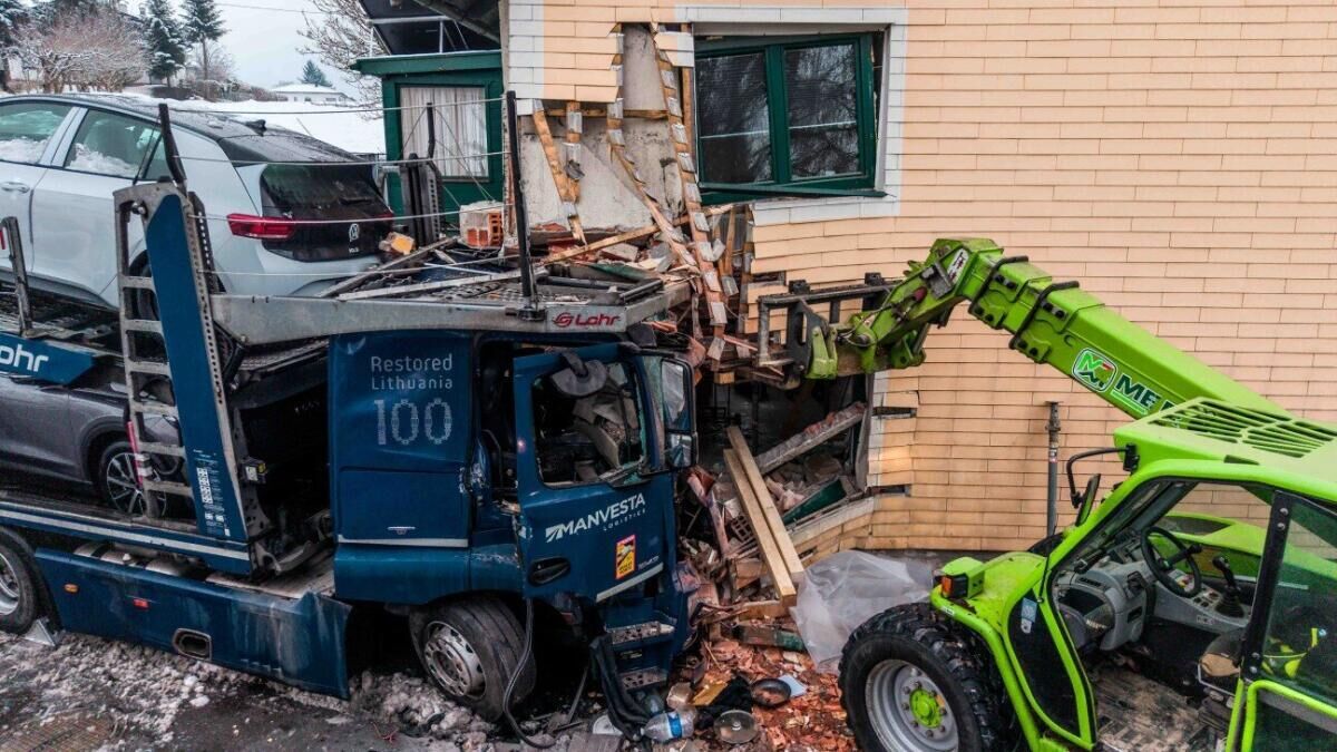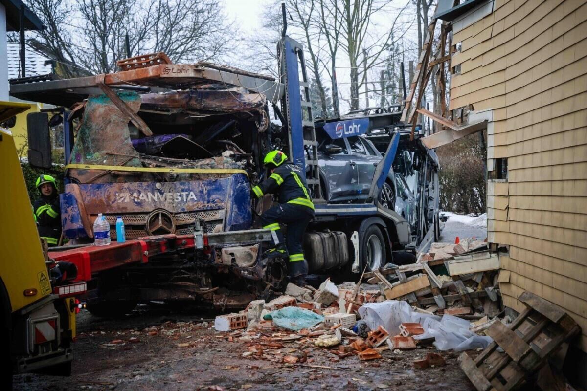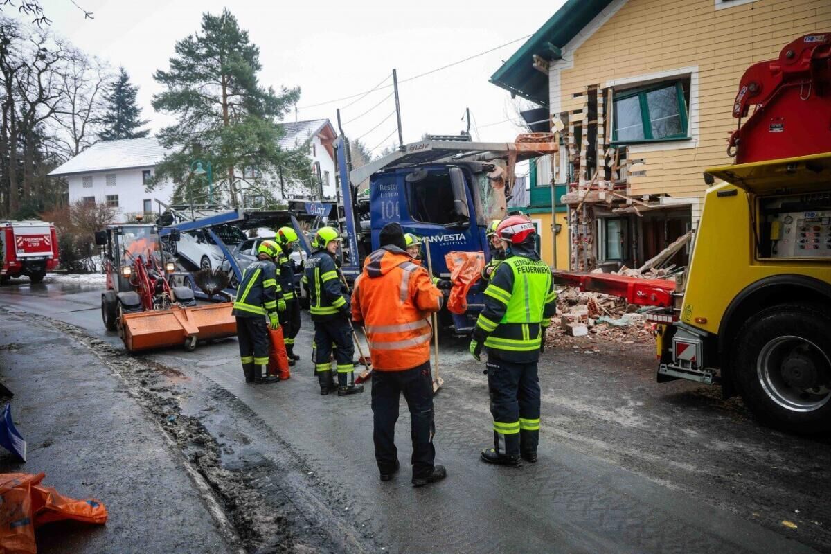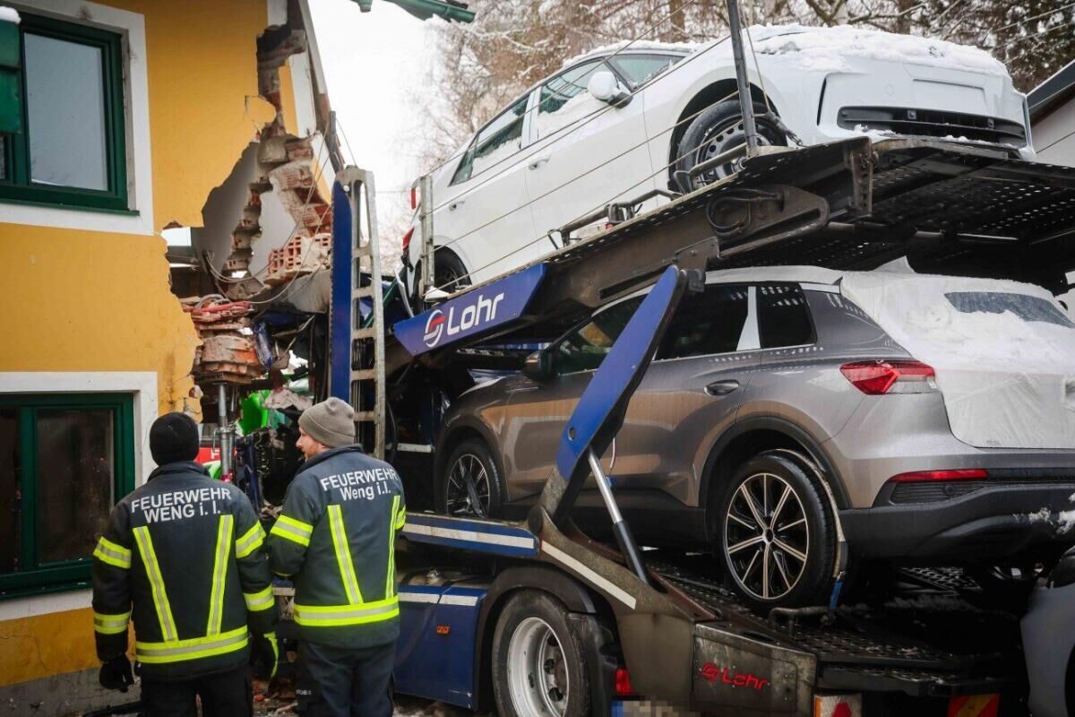 Autotransporter kracht in Weng im Innkreis gegen Haus