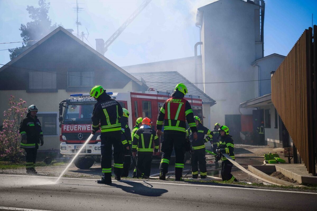 Gemeinsam mit drei weiteren Feuerwehren konnten die örtlichen Kräfte den Brand rasch unter Kontrolle bringen.Die am Einsatzort vorbeiführende B156 Lamprechtshausener Straße war für die Dauer der Löscharbeiten gesperrt. Eine Umleitung wurde eingerichtet.