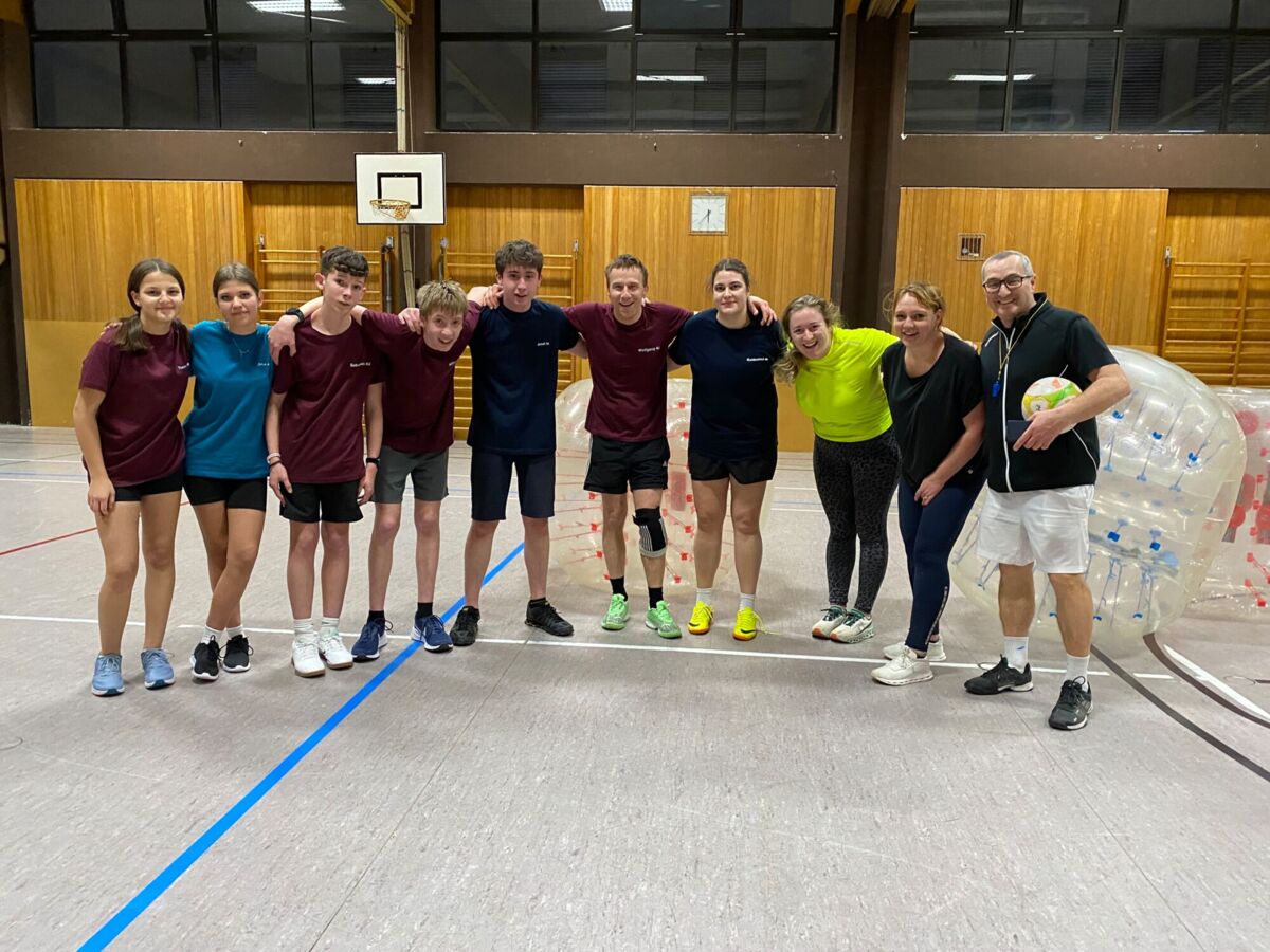 Insgesamt traten elf Schülerteams gegeneinander an, zusätzlich sorgte ein Lehrerteam für große Begeisterung bei den Zuschauern. Ausgestattet mit großen, aufblasbaren Bubbles lieferten sich die Spielerinnen und Spieler spannende und zugleich humorvolle Matches. Für einen reibungslosen Ablauf sorgten die Schülerinnen und Schüler selbst, die sich um Organisation, Spielplan, Bewirtung und Zeitmanagement kümmerten.