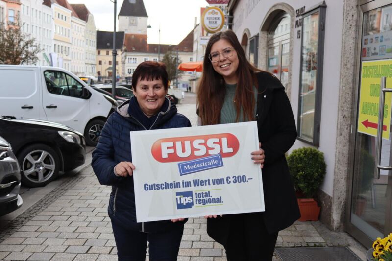 Die treuen Tips-Leser müssen dafür nur zur richtigen Zeit am richtigen Ort, wenn das Glücksengerl unterwegs ist, auf die Frage „Was ist Ihre Lieblingszeitung?“ die richtige Antwort parat haben. Sieglinde Ströbl schlenderte gerade über den Stadtplatz, als sie auf das Glücksengerl traf, und beantwortete die Frage voller Aufregung sofort mit „Tips!“. Für die richtige Antwort belohnte die Redakteurin Michelle Baumann die Gewinnerin mit einem 300-Euro-Gutschein von der Fussl Modestraße. Die glückliche Gewinnerin Sieglinde Ströbl aus Mining konnte ihr Glück kaum fassen und freut sich schon darauf, sich bei Fussl auf die Suche nach einer festlichen Kleidung für die Erstkommunion, auf die sie eingeladen ist, zu machen.