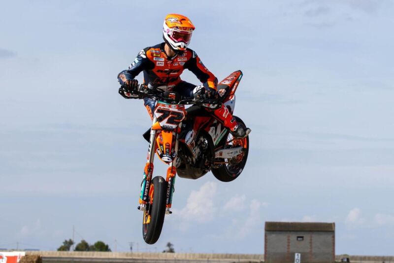 Lukas Höllbacher aus Ranshofen liegt nur noch drei Punkte hinter dem Tabellenführer bei der Supermoto-WM