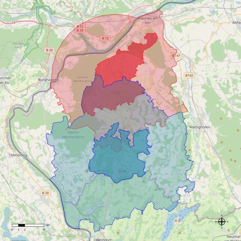 Im Bezirk Braunau wurde weiter südlich schon am 13. Jänner eine Schutz- und Überwachungszone eingerichtet. Daher kommt es in einigen Kastralgemeinden zu einer Überschneidung mit der jetzt eingerichteten Zone.