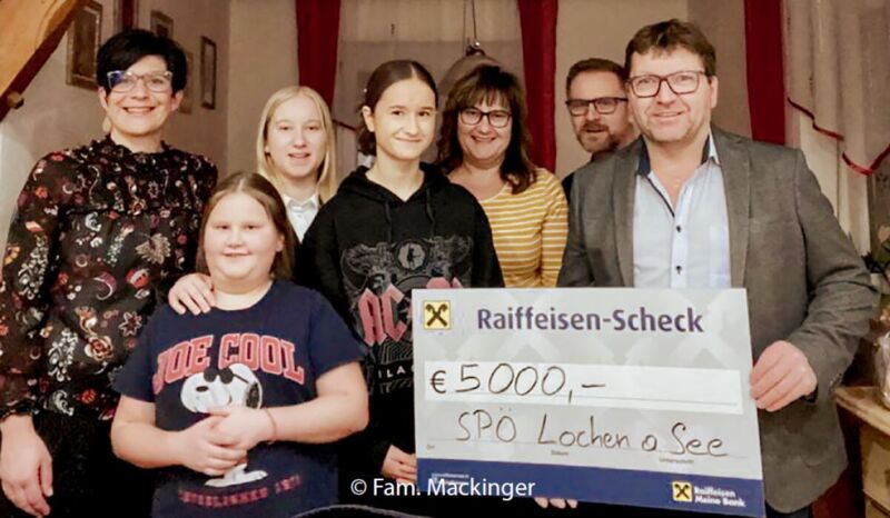 Die Familie muss seit einem Jahr ihren Alltag ohne den Familienvater, der vor einem Jahr völlig unerwartet starb, meistern. Die SPÖ Lochen rief daher bei ihrer Weihnachtsbaumaktion zu Spenden auf. 4.873 Euro wurden gespendet. Die SPÖ rundete den Betrag auf und überreichte nun den Scheck, der die psychologische Betreuung der Kinder finanziert, an Bianca Mackinger.