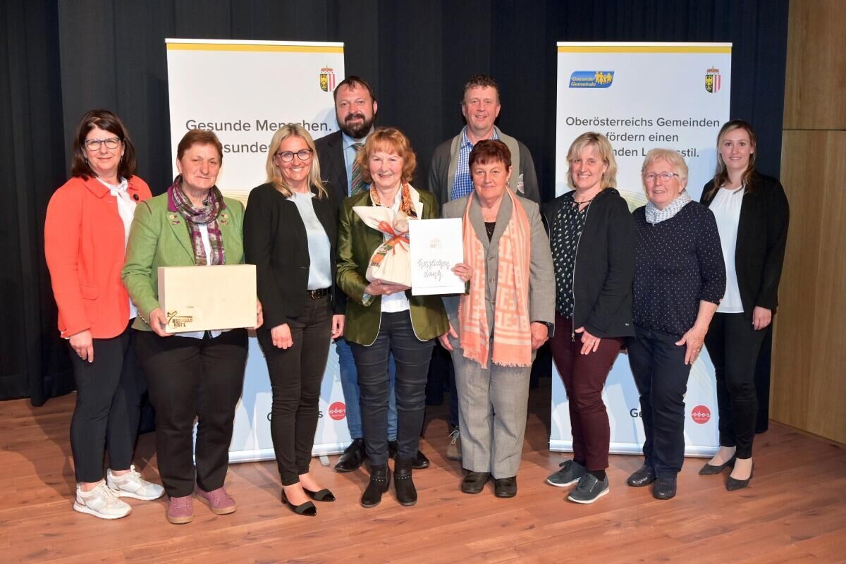 Die aktuellen Programme und Projekte der Gesundheitsförderung mit praktischen Umsetzungsmöglichkeiten wurden von Doris Kasberger von der Abteilung Gesundheit vorgestellt. Auch der neue Jahresschwerpunkt „gesund betreuen.gesund bleiben“ war Thema des Abends. Wissenswertes aus dem Bezirk Braunau präsentierten die Regionalbetreuerinnen Claudia Weilbold und Nina Sinnhuber und gaben damit einen Einblick in das ehrenamtliche Engagement in den Gesunden Gemeinden des Bezirks. Ehrenamtliche sind das Herzstück vieler Initiativen und gestalten das Gemeindeleben maßgeblich mit. Ohne freiwilliges Engagement und Ehrenamt wäre die Gesunde Gemeinde in ihrer Vielfalt undenkbar. Petra Köppl, Leiterin des Unabhängigen Landesfreiwilligenzentrums, präsentierte Ideen zur Gewinnung von Ehrenamtlichen. Für ihre langjährigen, ehrenamtlichen Tätigkeiten wurden 21 Arbeitskreisleiter geehrt – darunter Gudrun Schwarz (Gesunde Gemeinde Eggelsberg) für 20 Jahre Ehrenamt.