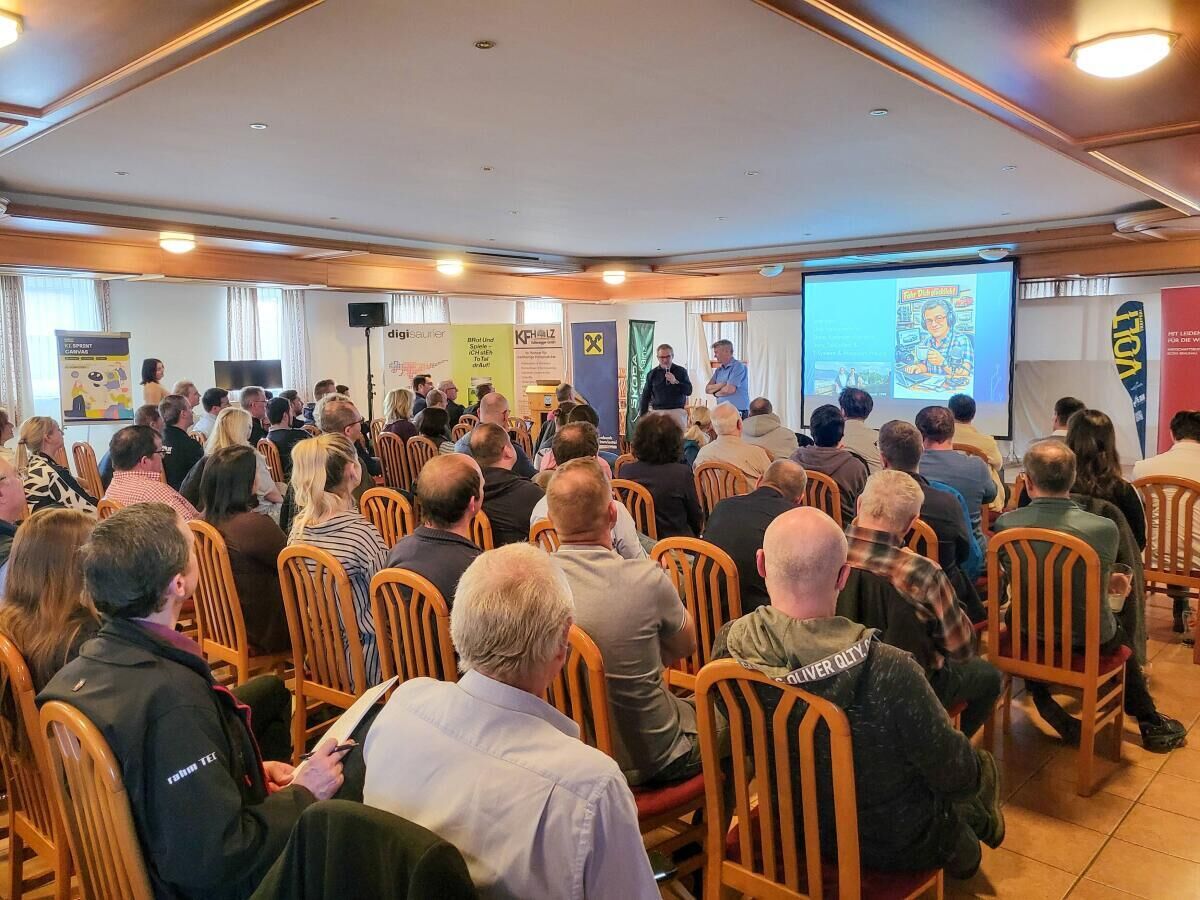 Rechtsanwalt Gerald Priller machte deutlich: KI kann nicht haften – der Unternehmer haftet immer. Steuerberater Philipp Gangl zeigte, wie Buchhaltung durch KI schneller und präziser wird, ohne Arbeitsplätze zu gefährden. Die Landjugend Moosdorf rundete den Abend ab: Martin Fuchs und Hannes Enthammer berichteten, wie sie KI für ihr 70-Jahre-Jubiläumsfest mit rund 6.000 Gästen eingesetzt hatten – von der Grafik bis zum Werbesong, der Kalkulation für die Burger bis zur App für die Kellner zum Bestellen.