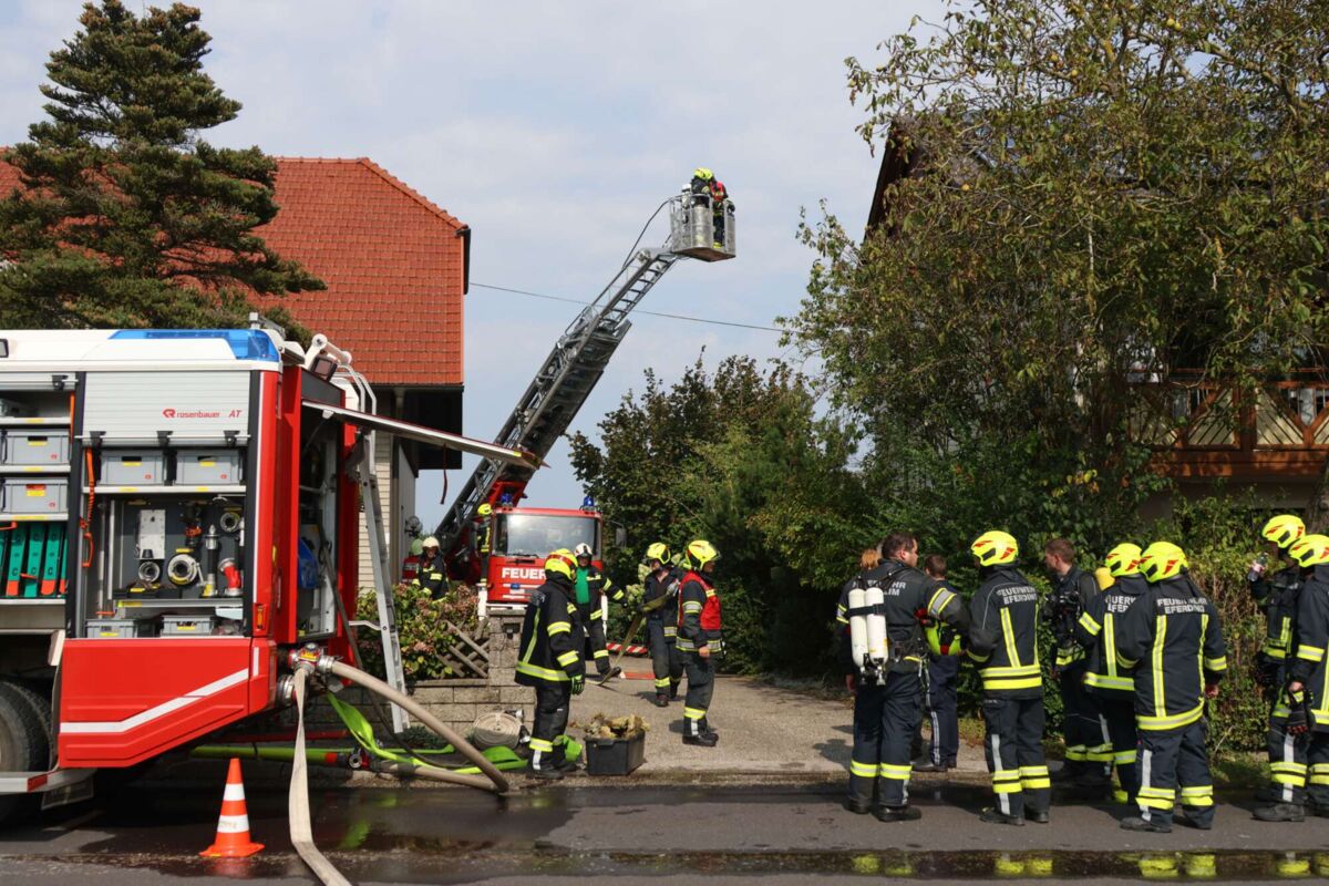 Vier Feuerwehren bei Brand am Dachboden eines Wohnhauses in Stroheim im Einsatz