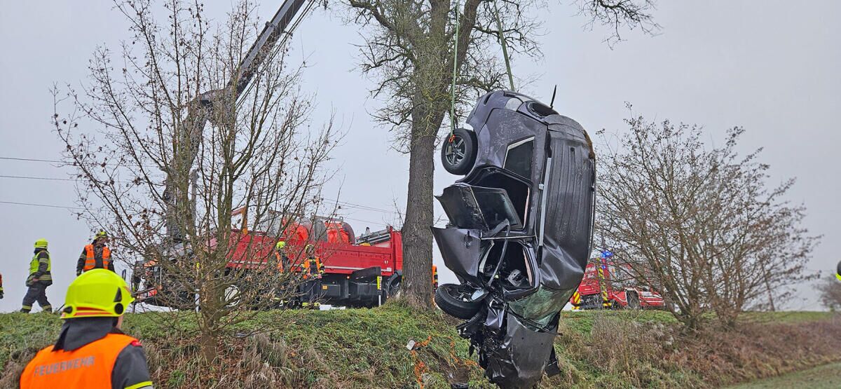 Die beiden Männer konnten den Unfall-Pkw leicht verletzt verlassen. Sie wurden von Sanitätern des Samariterbundes Alkoven und dem eintreffenden Notarzt versorgt. Nach Abschluss der polizeilichen Erhebungen führte die Freiwillige Feuerwehr Alkoven mit einem Kranfahrzeug die Bergung des Unfallwagens durch, während das zusätzlich alarmierte Team aus Polsing wieder abrücken konnte.