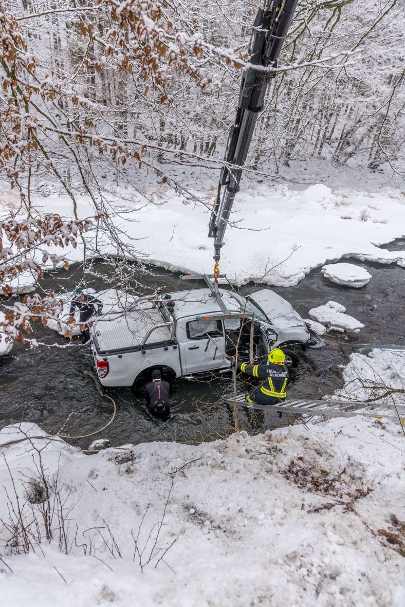 „Im Ortschaftsbereich Mayrhof, Gemeinde Stroheim, geriet er auf der mit Schneematsch bedeckten Fahrbahn ins Schleudern und prallte auf der linken Fahrbahnseite gegen einen Baum. Durch den Anprall rutschte das Fahrzeug die dortige Uferböschung hinab, überschlug sich und kam auf den Rädern in der Aschach zum Stillstand“ schildert die Polizei.
