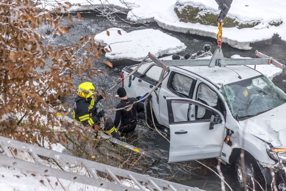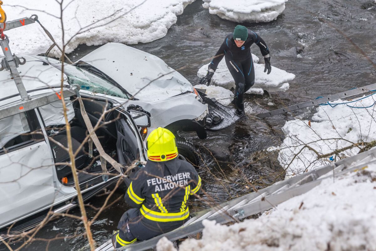 STROHEIM. Der Mann war im Schneematsch ins Schleudern geraten und gegen einen Baum geprallt, anschließend rutsche der Wagen in den Fluss.