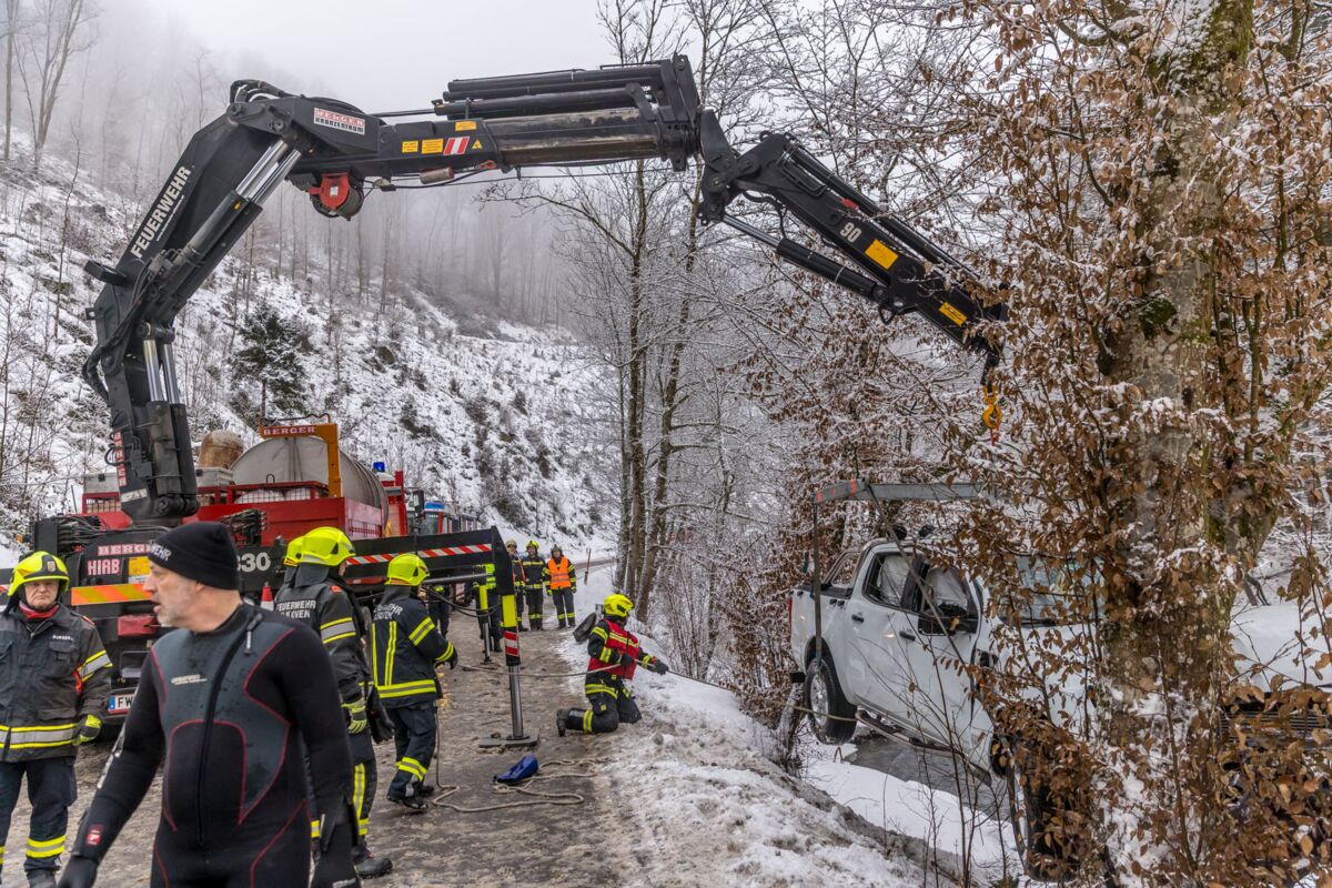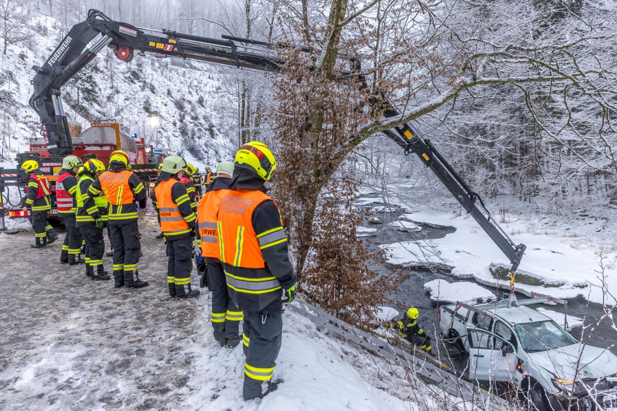Der Lenker konnte sich selbständig aus dem Fahrzeug befreien, wartete jedoch aufgrund der niedrigen Wassertemperatur auf das Eintreffen der Feuerwehr. Diese konnte ihn mit Hilfe einer Leiter gefahrlos retten. Der 42-Jährige wurde mit leichten Verletzungen in das Klinikum Wels gebracht.