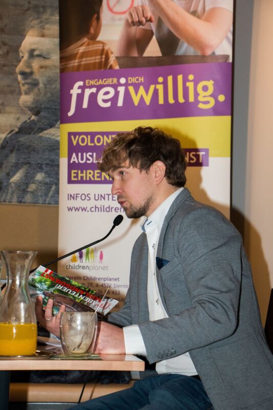 Mit seinem neuen Buch und der multimedialen Lesung entführt der freischaffende Journalist zu einer virtuellen Lesereise um den Globus auf den Spuren der jungen Botschafter Österreichs. Laglstorfer stellte am Biohof drei der insgesamt 18 Buchkapiteln anhand von Original-Audioaufnahmen, zahlreichen Fotos und Videos vor, darunter die österreichischen Auslandsdiener im Tibetischen Siedlungsbüro im indischen Dharamsala, bei der Jüdischen Gemeinde in der tschechischen Hauptstadt Prag sowie im Kinder und Familiendorf Evergreen-Gemeinschaft im kambodschanischen Stung Treng.