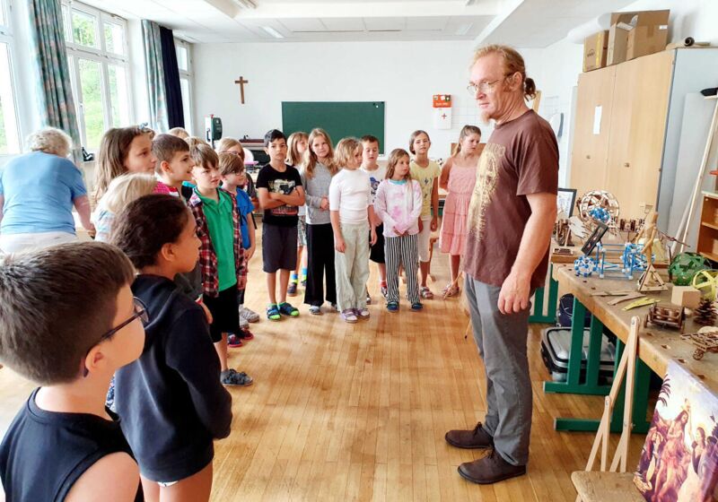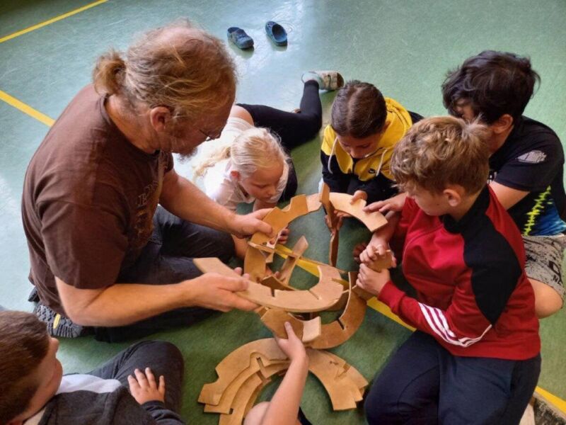 Die Schüler aus Aschach und Waizenkirchen bekamen etwa bei der Leonardo-Werkstatt Einblicke in die technische, geometrische und künstlerische Welt des Genies Da Vinci und bauten selbst Brücken ganz ohne Werkzeug und Verbundmaterial. Ihr schauspielerisches Talent durften die Schüler der VS Natternbach beim Mitmachtheater erproben. So erlebten sie hautnah die Geschichte des Kinderbuchs „Das Städtchen Drumherum“.