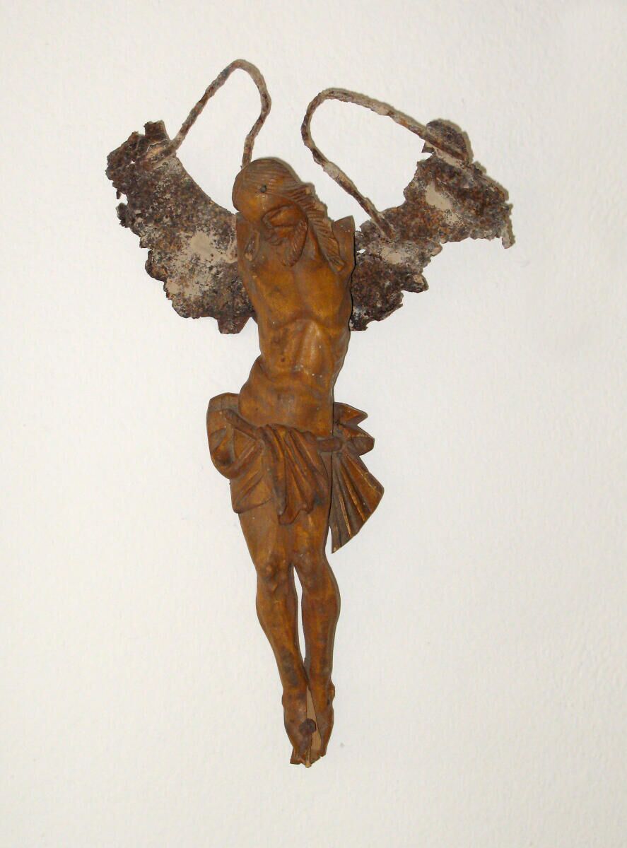 Es war nicht sofort klar, was die Stroheimer Künstlerin mit einem kaputten Christus vom Flohmarkt anfangen sollte und so lag die Figur zwei Jahre lang in ihrem Atelier herum. Normalerweise zeichnet und aquarelliert Bindreiter gerne oder gestaltet fantasievolle, witzige Objekte aus Flohmarktfunden. „Dann hatte ich plötzlich eine Idee, die mich bis heute nicht mehr los lässt“, meint Bindreiter. Sie haucht den kaputten Figuren neues Leben ein, nimmt sie vom Kreuz oder ergänzt sie mit anderen Materialien, verändert aber an den Christusfiguren selbst nichts. „Ich wollte mehr die Auferstehung als den Tod am Kreuz betonen und zeigen, was nach dem Tod kommt: Befreiung und Erlösung. Durch ihre Unvollkommenheit sind sie ein Symbol menschlichen Lebens geworden“, beschreibt die Stroheimerin ihre Gedanken zu ihren Kunstwerken.