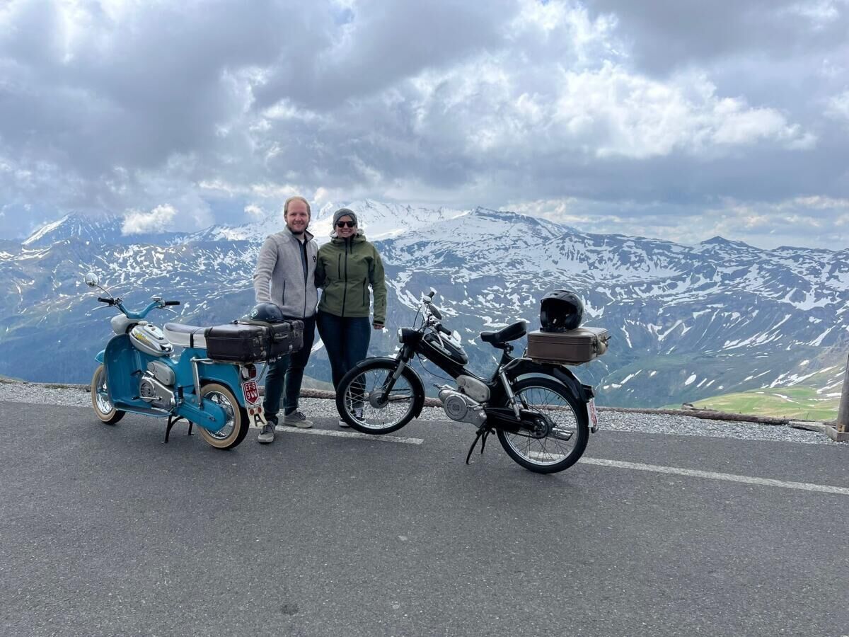 PRAMBACHKIRCHEN. Der Prambachkirchner Wolfgang Höflinger und seine Freundin Susi Höglinger machten mit ihren Mopeds aus den 60er-Jahren eine Fahrt zum Großglockner.