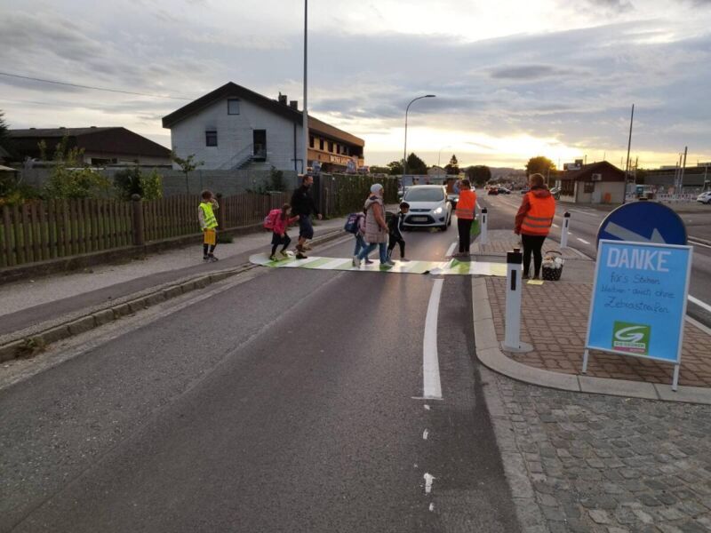 Wie in vielen anderen Orten auch gibt es in Alkoven für viele Schulkinder keine Busse mehr. Diese müssen nun auf die Linzer Lokalbahn ausweichen, welche die Schüler – besonders jene aus den Ortschaften Bergham und Hochfeld – zu Fuß nur entlang der Bundesstraße erreichen. Da dort viel Verkehr herrscht, birgt die Überquerung große Gefahren. Deshalb rollten die engagierten Eltern gemeinsam mit den Grünen Alkoven den kleinen und großen Pendlern sprichwörtlich den roten Teppich aus: Mit einem mobilen Zebrastreifen, der extra für die Fußgänger ausgebracht werden kann, wollten sie den Autofahrern die besondere Verkehrssituation nicht nur am neuen Bahnhof verdeutlichen. Gleichzeitig erhielten Lilo-Pendler am neuen Bahnhof pünktlich zur europäischen Mobilitätswoche frisches Gebäck als Dankeschön für ihre umweltfreundliche Mobilität. Neben Bewusstseinsbildung der Verkehrsteilnehmer erhoffen sich die Veranstalter sichere Lösungen für den Schulweg sowohl zur öffentlichen als auch zur Martin-Buber-Landesschule, zum Beispiel mit Hilfe von Schülerlotsen. Interessierte an dieser Aufgabe können sich auf der Gemeinde Alkoven melden. Bis dahin sind alle Verkehrsteilnehmer gefordert, den öffentlichen Raum „Straße“ für Jung und Alt so sicher wie möglich zu gestalten.