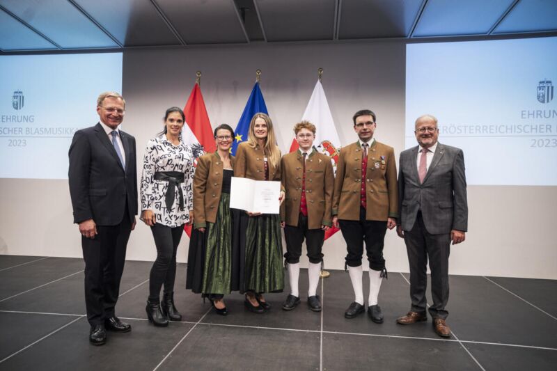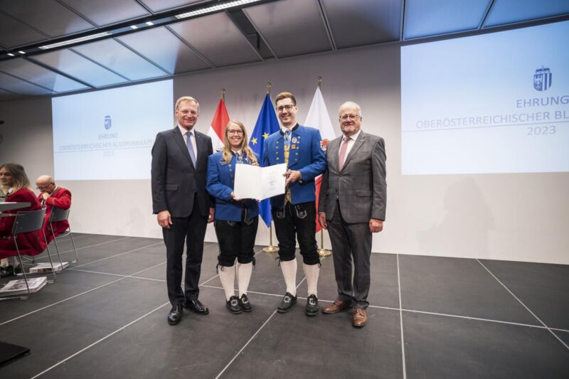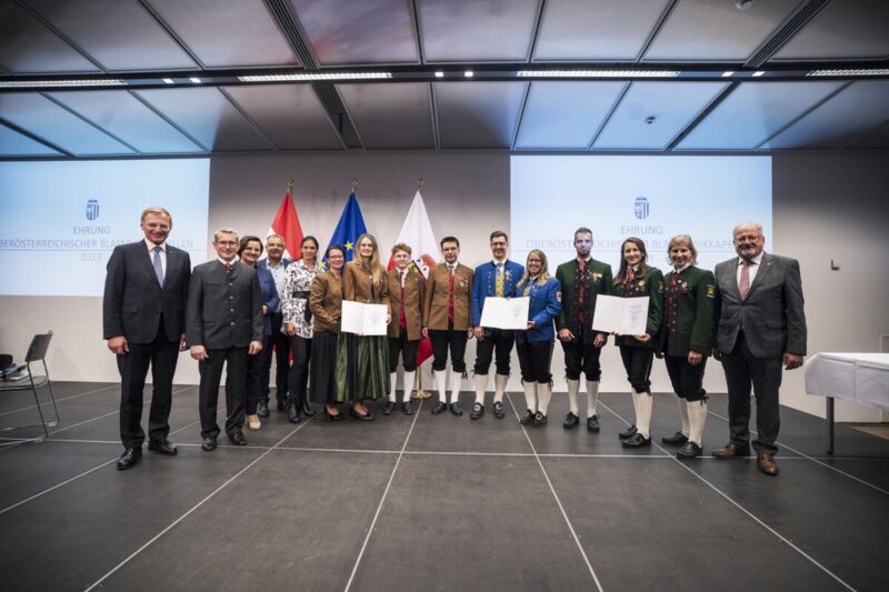 Bei einem Festaktim Linzer Schlossmuseum ehrte Landeshauptmann Thomas Stelzer 60 Blasmusikkapellen aus ganz Oberösterreich für ihre Leistungen bei Konzert- und Marschwertungen. Diese Würdigung erhalten jene Vereine, die seit der letzten Ehrung mindestens an fünf Konzertwertungen und an drei Marschwertungen teilgenommen haben. Die allermeisten Kapellen waren aufgrund ihres Engagements schon zum wiederholten Mal zu dieser Ehrungsfeier geladen.