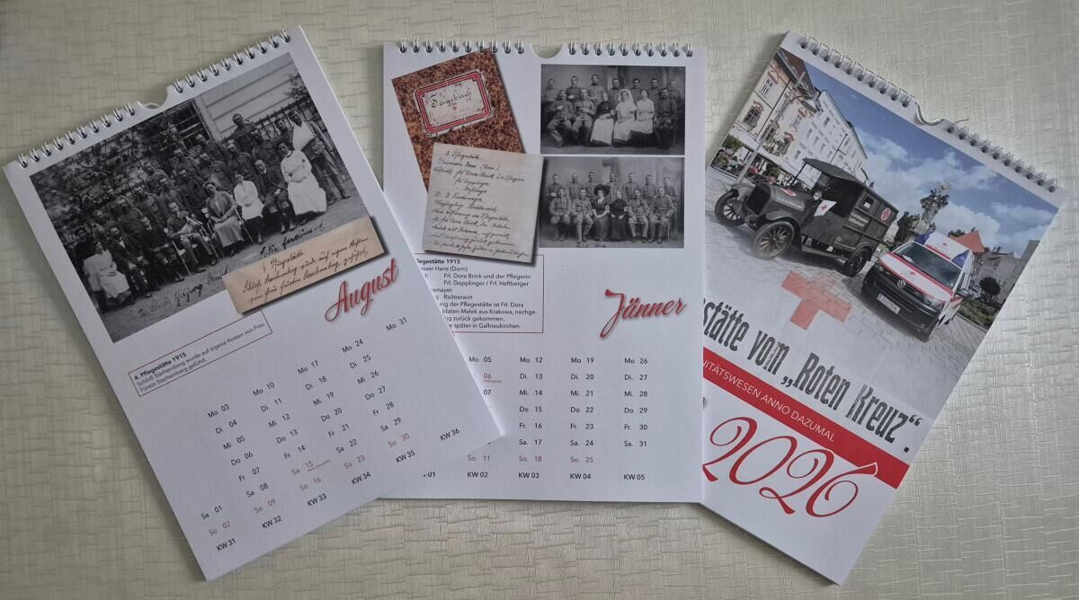Der Kalender zum Thema „Sanitätswesen Anno Dazumal - Pflegestätte vom Roten Kreuz“ wurde von „Eferding in alten Ansichten“ gemeinsam mit dem Verein „Geschichte teilen“ gestaltet. Darin befinden sich Einblicke in das Sanitätswesen während des Ersten Weltkrieges, mit Schwerpunkt auf Eferding, jedoch auch einigen Fotos aus Linz.