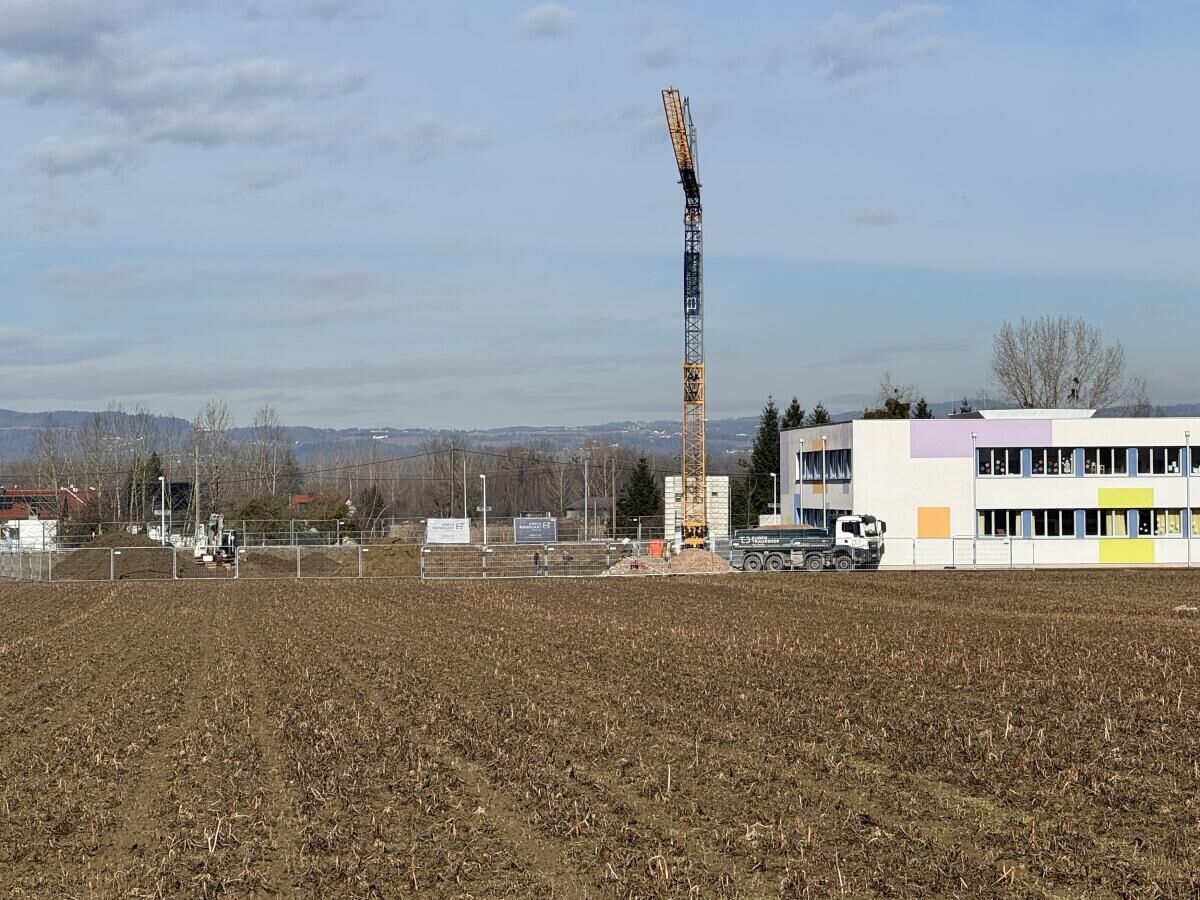 ALKOVEN. Bisher führt die Zufahrt zur Baustelle für die Schulerweiterung in Alkoven direkt über den Schulweg der Volksschulkinder. Die Gemeinde errichtet nun eine separate Baustraße auf Eigengrund, um dies zu verhindern.