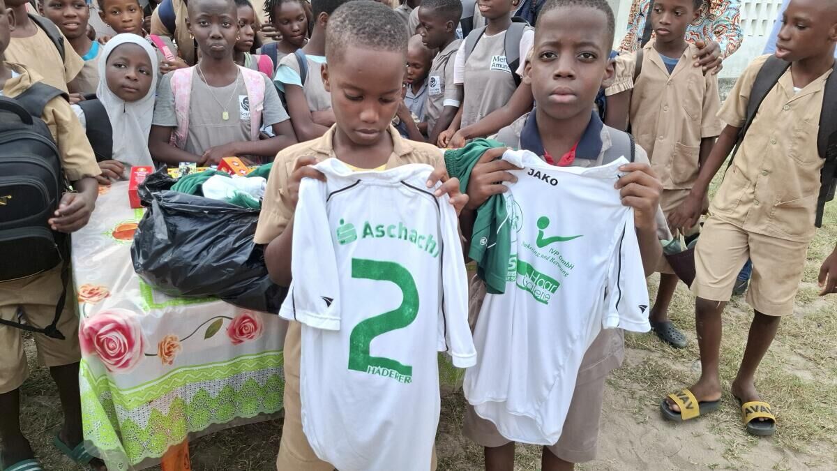 „Nach intensiven Tagen und vierzig Grad Außentemperatur sind wir wohlbehalten wieder aus Benin zurückgekehrt“, sagt Josef Elsener. Während ihrer Reise haben sie die von ihnen initiierten Projekte besucht, bei denen es um die Bildung von Kindern und Frauen sowie die Weiterbildung von Pädagogen und die Unterstützung von Kindern mit Beeinträchtigung geht. Außerdem übergaben sie einer Gruppe von Schulkindern Trikots vom SV ASCHACH.