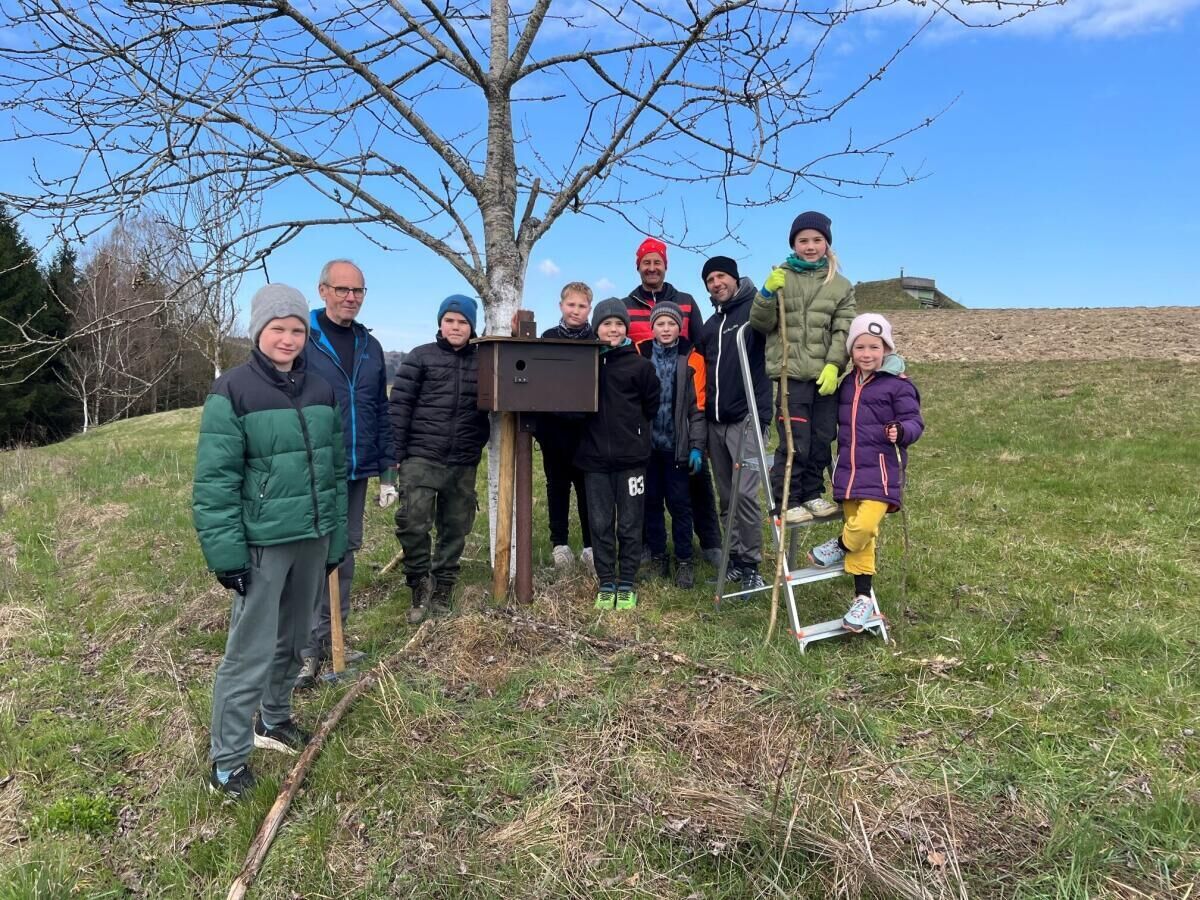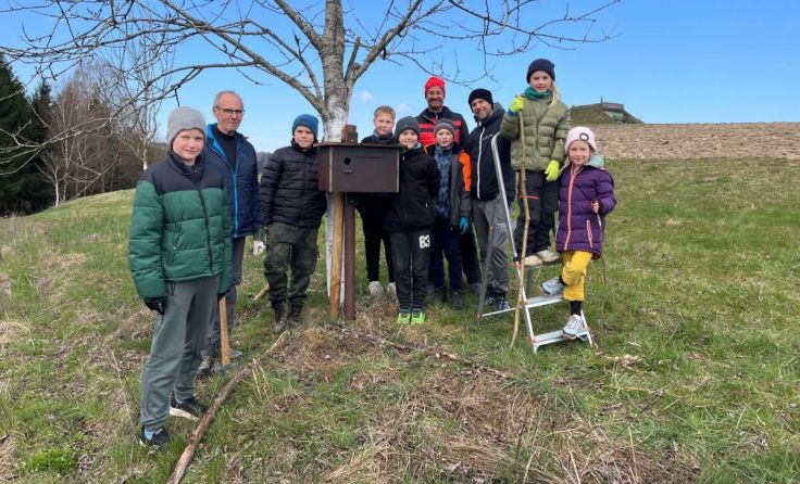 HAIBACH OB DER DONAU/ST. AGATHA. Die Naturschutzgruppe Haibach setzt sich seit einem Jahr für den zurückgekehrten Wiedehopf ein. Im Winter haben die Schüler der Mittelschule St. Agatha Nistkästen gebastelt, die sie gemeinsam mit der Naturschutzgruppe in Haibach und St. Agatha montiert haben.