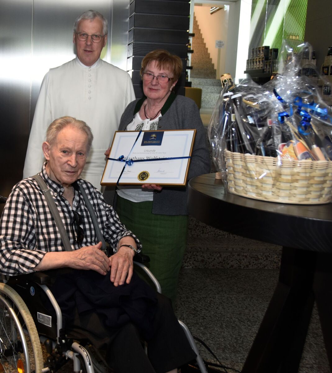 Anlässlich der Jubiläen 50 Jahre Schlägler Bier in ihrem Gasthaus und dem 80. Geburtstag von Christine Wolfsteiner besuchten die Wirtsleute samt Stammgästen die Landesausstellung sowie die Stiftsbrauerei in Schlägl. Im Anschluss an die Brauereibesichtigung wurde das Ehepaar noch von der Brauerei für seine langjährige Treue geehrt.