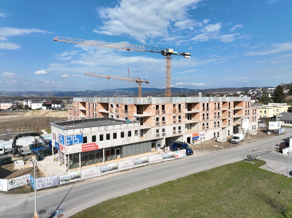 Umgesetzt wird das Wohnbauprojekt „Alkoven am Dorfplatz“ von OÖ Wohnbau. Im ersten Bauabschnitt werden 68 Mietwohnungen und Gewerbeflächen realisiert. Alle Zwei-, Drei- und Vier-Raum-Wohnungen mit Wohnflächen zwischen 55 und 90 Quadratmetern verfügen über eine Loggia oder eine Terrasse. Die Beheizung der Wohnanlage erfolgt über eine zentrale Nahwärmeanlage. Die ersten Wohnungen werden voraussichtlich im November bezugsfertig sein.