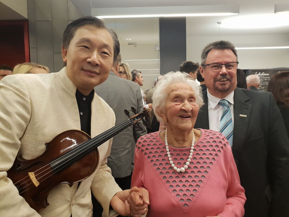 Bürgermeister Herbert Fürst und Professor Lui Chan nahmen die Gelegenheit natürlich wahr um der rüstigen Dame zu gratulieren. Die kulturbegeisterte Jubilarin versprach beim nächsten Neujahrskonzert im Jahr 2020 wieder mit dabei zu sein.