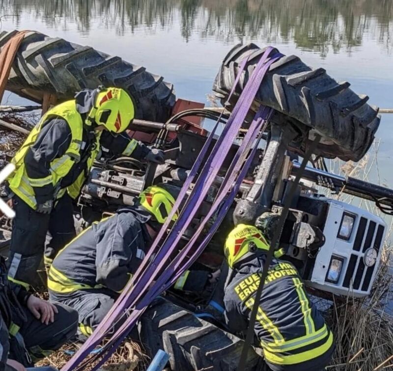 ERNSTHOFEN. Bei Arbeiten im Uferbereich eines Segelvereins bei der Enns bei Ernsthofen kippte ein Traktor mit Frontlader in den Enns-Fluss. Der Lenker konnte den Traktor selbstständig und unverletzt verlassen.