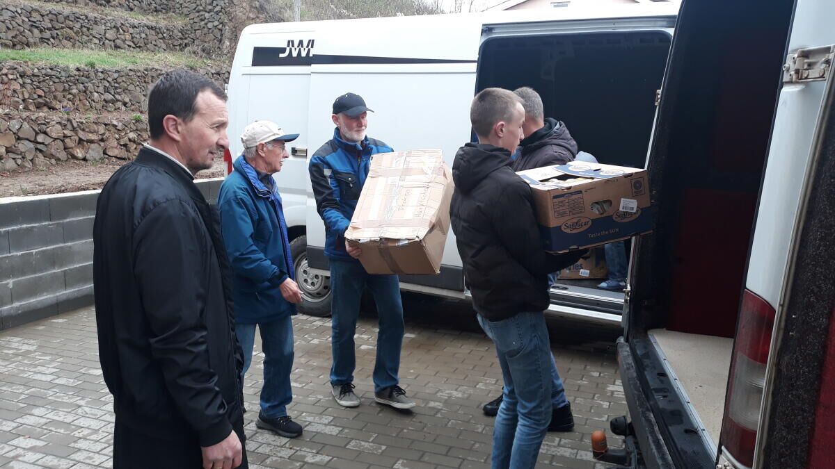 Das Wetter am Samstag zeigt sich von seiner schlechten Seite. Es ist regnerisch und windig. Mit Unterstützung von Maria und ihren Helfern beginnen wir mit dem Ausladen eines Busses. Danach geht es weiter nach Wynohradiw, wo wir einem Waisenhaus einen Besuch abstatten, das zu einem griechisch-katholischen Kloster gehört. Die Waren werden in einen Bus umgeladen, der weiter nach Mariupol fährt. Das Programm an diesem Tag lässt nicht viel Zeit zum Verschnaufen. Zurück in Beherove fahren wir zu einer Schule, in der Flüchtlingskinder betreut werden. Danach geht es weiter in ein Krankenhaus, in dem leichtverletzte Soldaten ein kleines Geschenk von uns bekommen. Zwischendurch gibt es einen Kaffee im Restaurant „Parisel“, das vom Krieg völlig unberührt zu sein scheint.