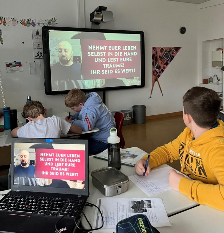 Der EU-Jugendbotschafter und Persönlichkeitstrainer Ali Mahlodji kam mit zwei Jahren als Flüchtlingskind aus dem Iran nach Österreich und musste früh lernen, Ängste zu überwinden und Schwierigkeiten zu bewältigen. In einem packenden Online-Vortrag erzählte er den Jugendlichen von den mehr als 40 Jobs, die er im Laufe seines 42-jährigen Lebens ausübte und von all den damit verbundenen Problemen, die es zu überwinden galt.