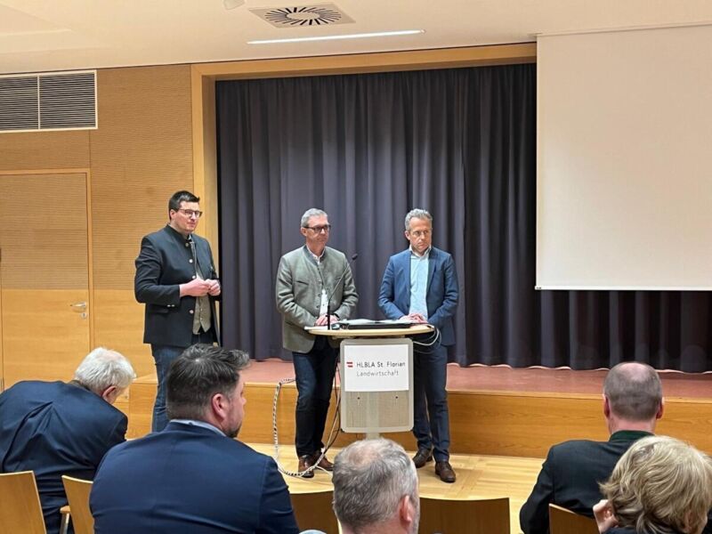 LINZ/LINZ-LAND. Im Rahmen der Veranstaltungsreihe „Kammerführung im Dialog“ lud die Landwirtschaftskammer Oberösterreich nun auch zum Informationsabend in die HLBLA St. Florian ein. Dort blickten Präsident Franz Waldenberger und Kammerdirektor Karl Dietachmair auf die Krisen und Herausforderungen des vergangenen Jahres zurück und gaben einen Ausblick auf das kommende Jahr. Außerdem standen sie im Anschluss den Anwesenden Rede und Antwort.
