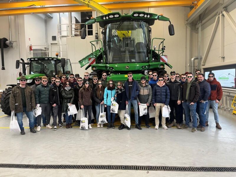 Nachdem die Florianer das neu eröffnete Technik-Center erkunden durften, wurde der Fuhrpark besichtigt. Die Schüler bekamen anschließend detailliertere Informationen zu ausgewählten Maschinenmodellen: Vor allem der neue John Deere Traktor mit automatischer Frontlader-Konsole stellte ein Highlight dar.