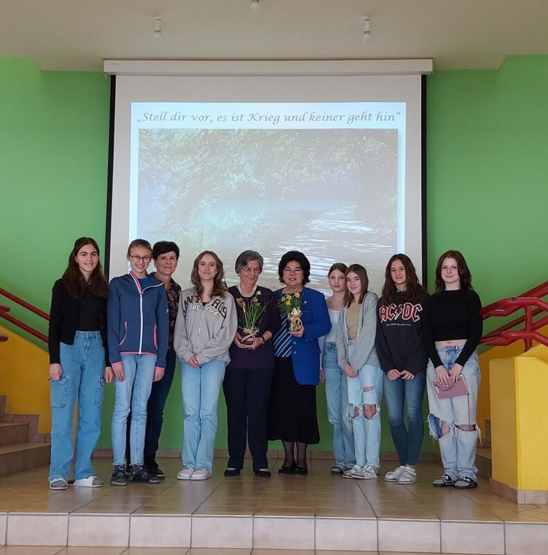 Ingrid Portenschlager ist eine Zeitzeugin der zweiten Generation und Mitglied im Verein Lila Winkel. Ihr Vater, Ernst Reiter, war aufgrund seines Glaubens – er war Zeuge Jehovas – über vier Jahre im Konzentrationslager Flossenbürg inhaftiert. Was er dort alles erlebt und erlitten hat und wie sich diese furchtbaren Geschehnisse auf sein späteres Leben und seine Familie ausgewirkt haben, erzählte Ingrid Portenschlager in einem sehr bewegenden Vortrag an der IMS Langenhart. Die Schüler der 4. Klassen waren tief beeindruckt und bedankten sich bei den Damen vom Verein Lila Winkel für ihre wertvolle Erinnerungsarbeit.