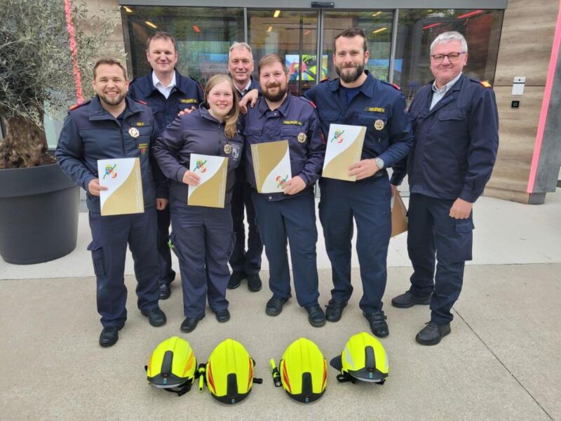 ERLA. Philipp Freilinger und Kersin Uridat – beide Feuerwehrmitglieder der FF Erla – haben gemeinsam mit zwei weiteren Kameraden und dem Ausbildnerstab das Feuerwehrleistungsabzeichen in Gold (FLA Gold) absolviert.