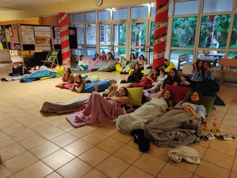 Die Schüler des Schwerpunktes Musik und Kreativität an der Innovativen Mittelschule (IMS) Langenhart durften eine Nacht in der Schule verbringen. Tagsüber wurde fleißig für eine bevorstehende Aufführung geprobt, abends stand die Gemeinschaft im Vordergrund. Es gab Pizza, eine Filmvorführung mit Popcorn und Zeit zum Spiele spielen. Nach eigemeinsamenFrühstpück ging’s wieder ab ins Klassenzimmer.