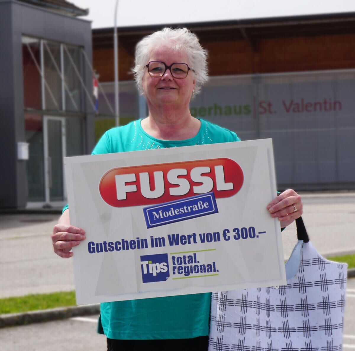 Der Tips Glücksbote Norbert Mottas war entsandt worden, um Passanten nach deren Lieblings-Gratiszeitung zu befragen und mit einem 300 Euro-Gutschein zu beschenken, falls die Antwort „Tips“ lautet. Glück hatte Eva Forstenlechner aus Erla, die zuerst gar nicht glauben wollte, dass sie wirklich gewonnen hatte. Umso größer war ihre Freude als sie sah, dass es stimmte. „So etwas ist mir noch nie passiert. Sie haben meinen Tag versüßt“, erklärte sie.