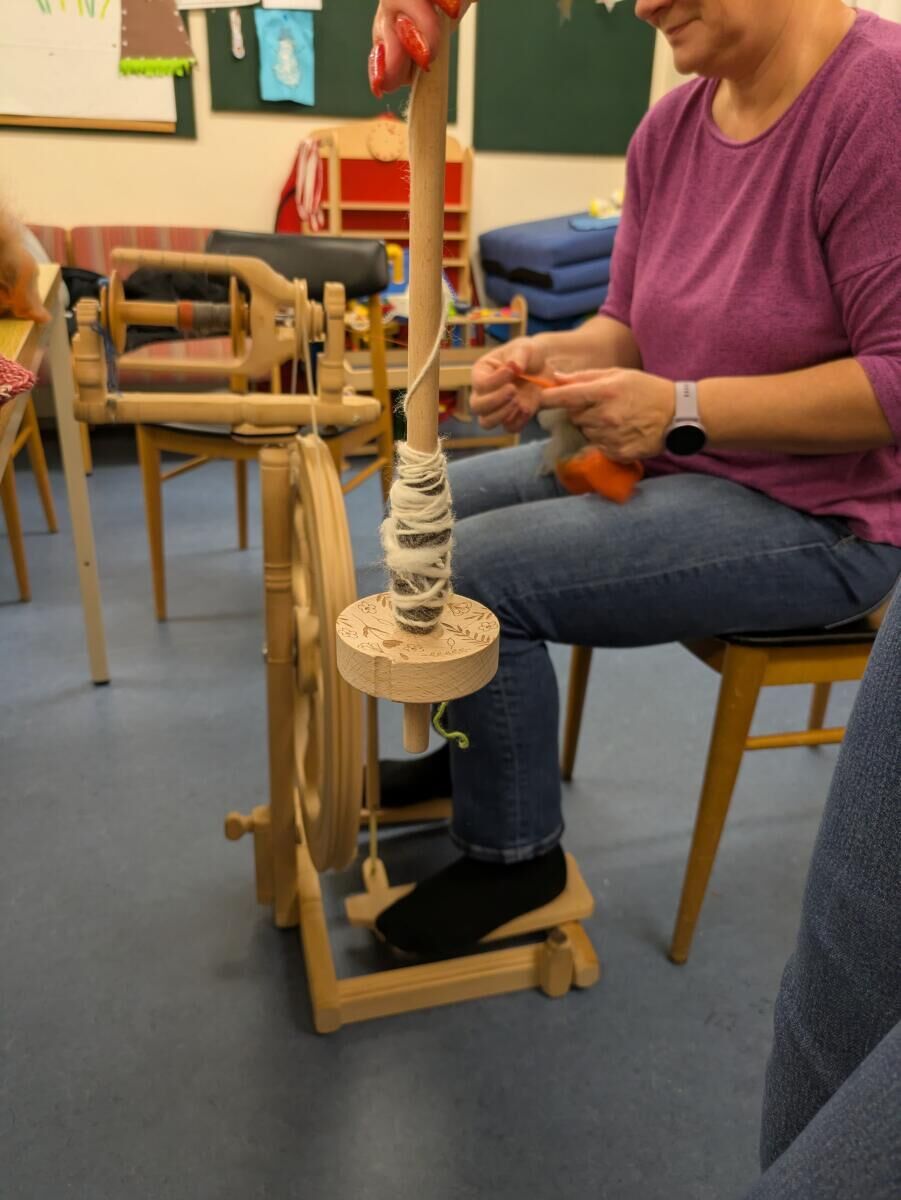 Die Handarbeitstreffen sind ein geselliges und gemütliches Zusammenkommen, bei dem die Künstlerinnen ihre Leidenschaft für Handarbeiten wie Stricken, Häkeln oder auch Garn spinnen ausleben. Sie helfen einander mit Anleitungen und Techniken und tauschen Wissen aus.