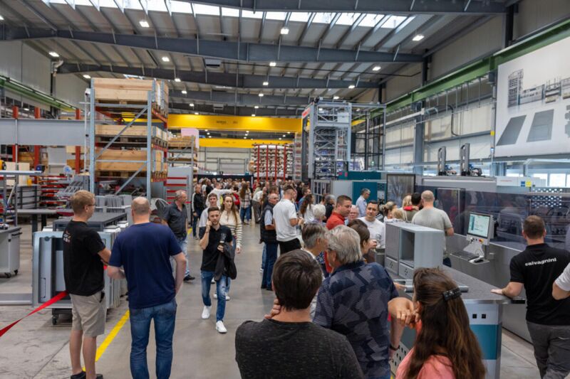 Nach der Begrüßung durch die Firmenleitung konnten die 1.400 Gäste live mitverfolgen, wie präzise und schnell Fisch-Räucherschränke sowie Tablet-Halter als Give-aways auf Salvagnini-Maschinen produziert werden. Auch für die über 150 Kinder wurde mit Hüpfburg, Schminkecke und spannenden Augmented Reality-Vorführungen bestens gesorgt. Folkshilfe, die heimischen Großmeister des „Quetschn-Synthi-Pop“, brachten mit ihrem knapp eineinhalbstündigen Konzert die Stimmung zum Kochen.