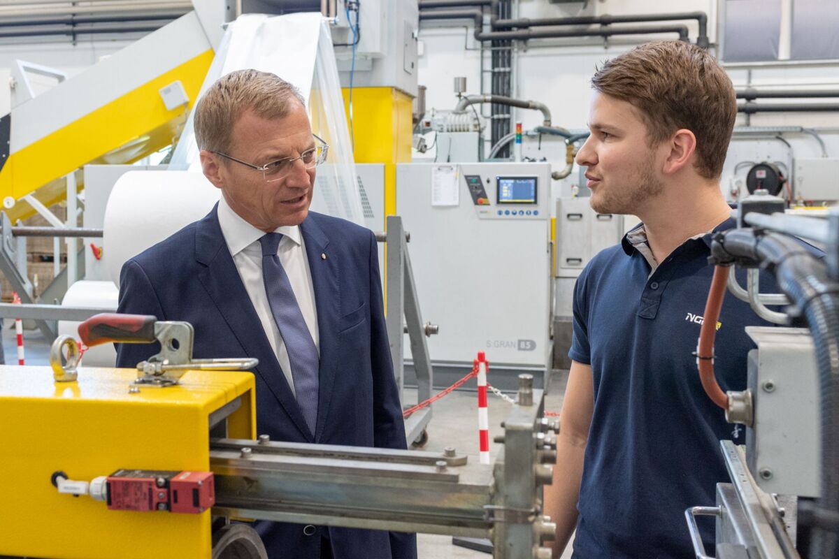FELDKIRCHEN. Landeshauptmann Thomas Stelzer besuchte die Firma NGR (Next Generation Recyclingmaschinen GmbH) an ihrem Hauptsitz in Feldkirchen und informierte sich über deren Geschäftsfeld.