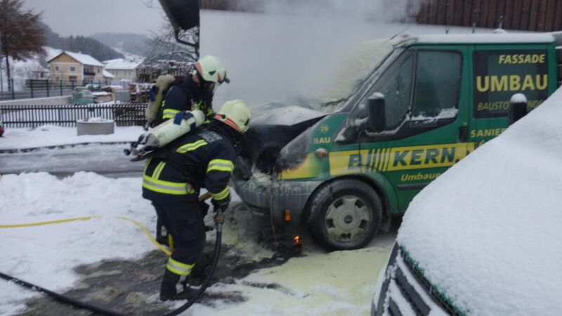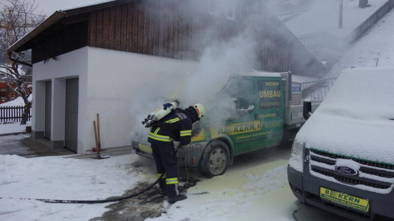 Am Samstag Nachmittag begann ein abgestellter Pritschenwagen auf einem Firmenparkplatz in Unterweißenbach zu brennen. Ein aufmerksamer Anrainer, unterstützt durch einen vorbeifahrenden Pkw-Lenker, dämmte den Entstehungsbrand mit Feuerlöschern ein. Drei Minuten nach der Alarmierung war auch schon die Feuerwehr Unterweißenbach vor Ort und führte die weiteren Löscharbeiten durch. Durch das rasche Eingreifen entstanden bei den nebenbei geparkten Fahrzeugen und bei der angrenzenden Garage keine Schäden.