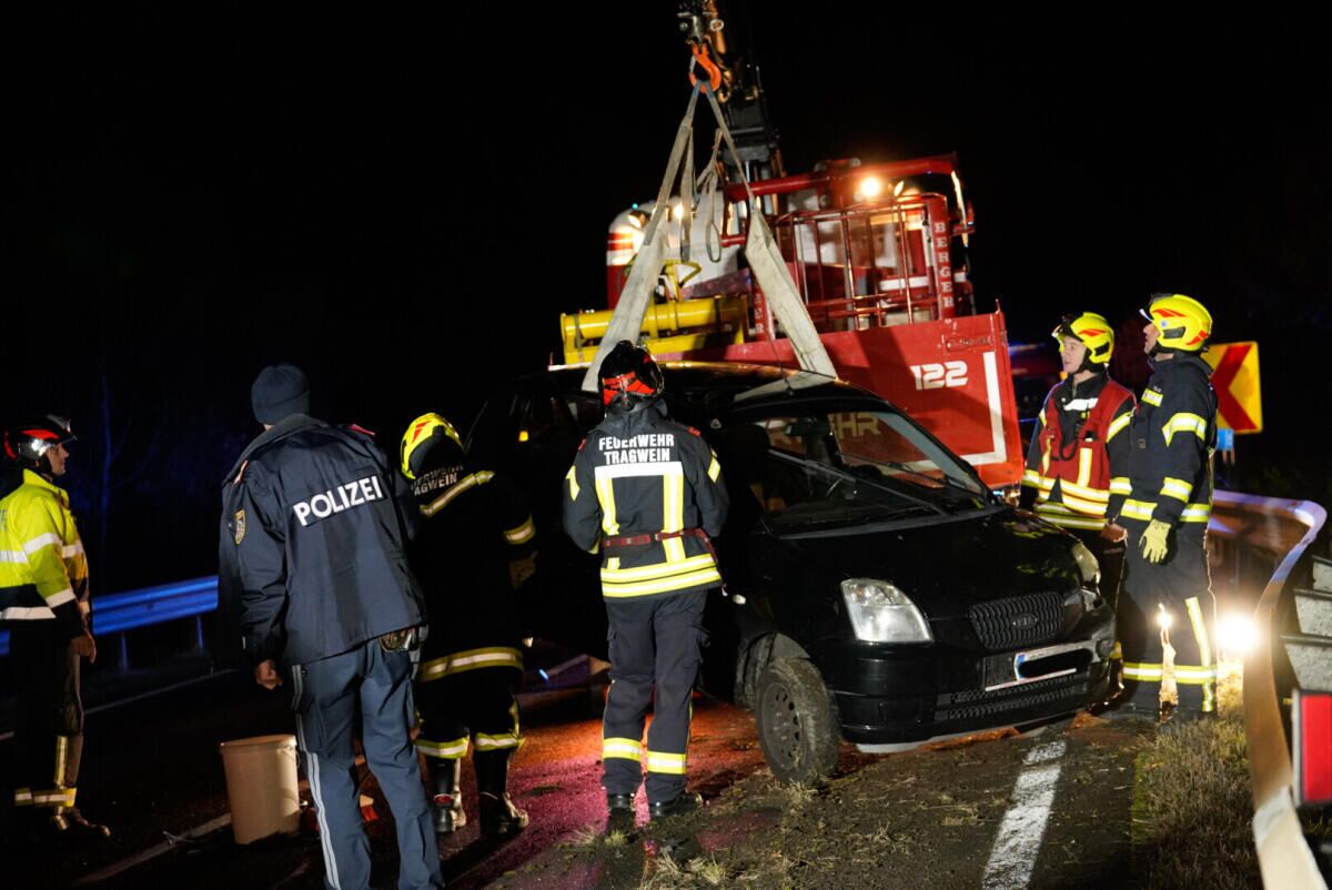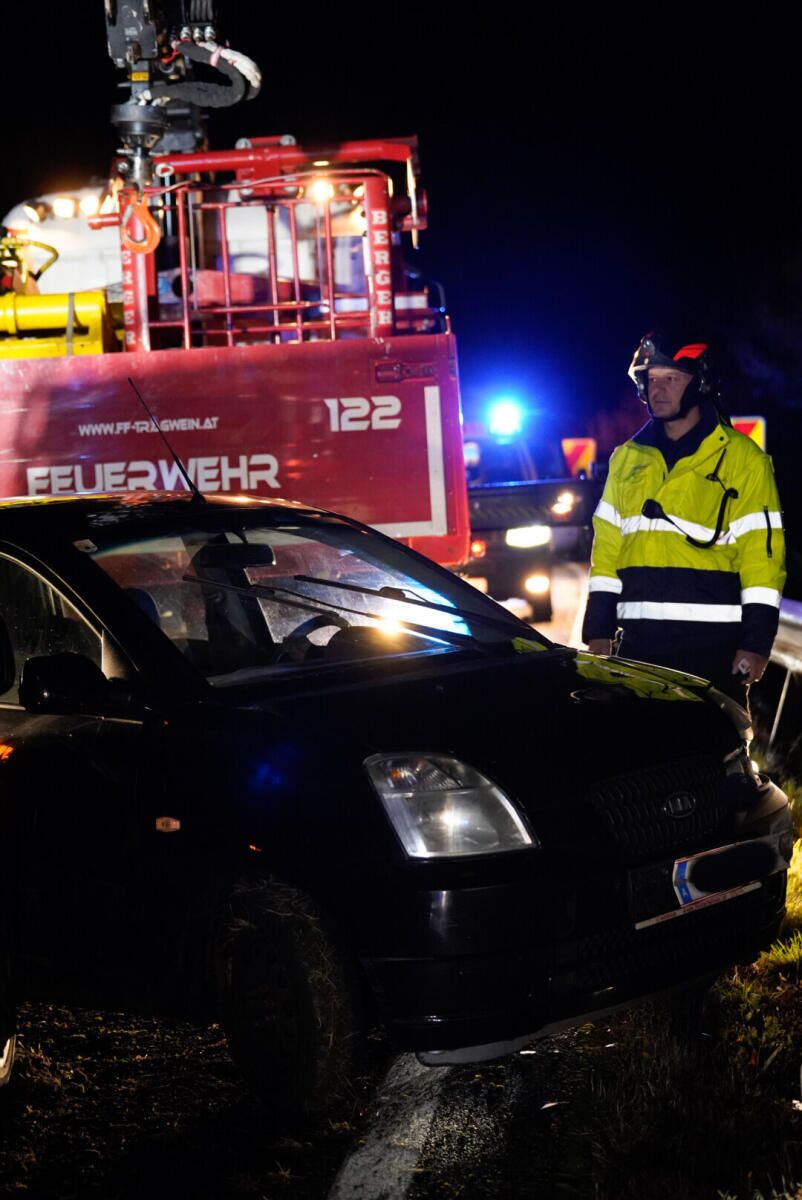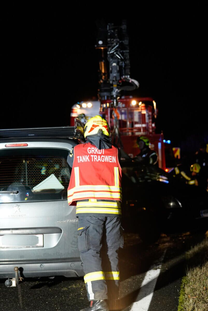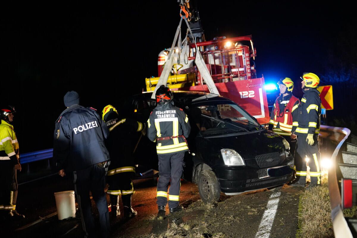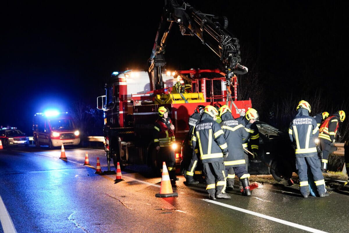 Bei dem Unfall wurde eine Person verletzt, während eine weitere Person unverletzt blieb. Die Feuerwehr Tragwein barg das Unfallfahrzeug und reinigte die Fahrbahn.