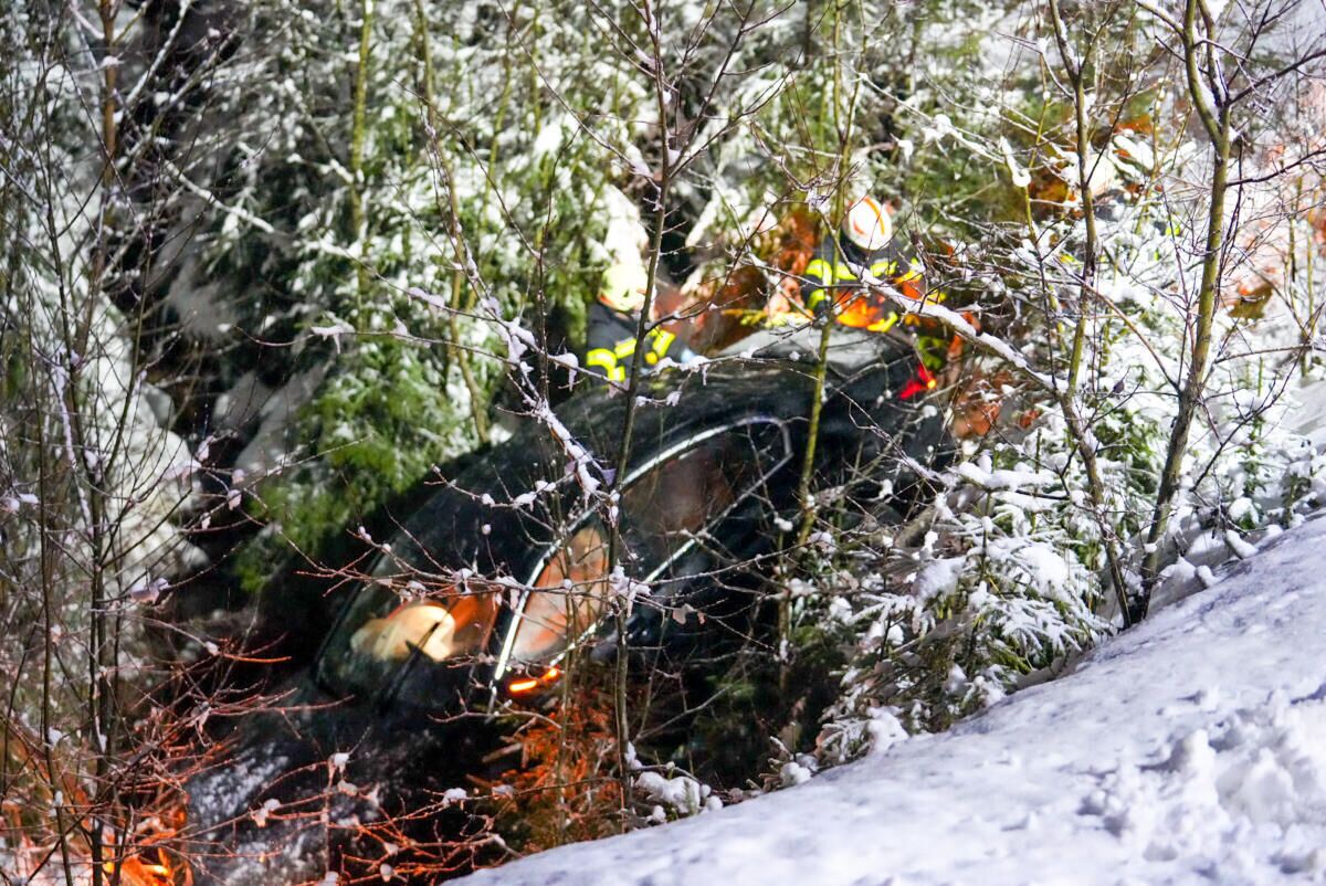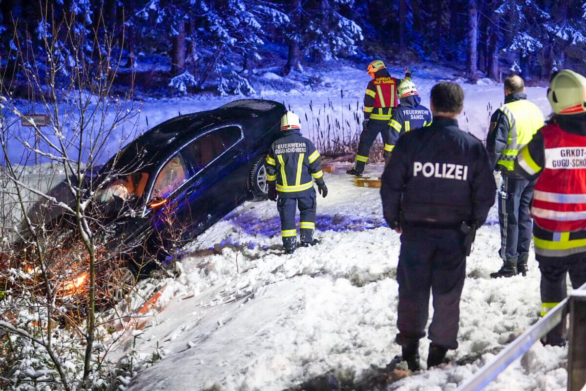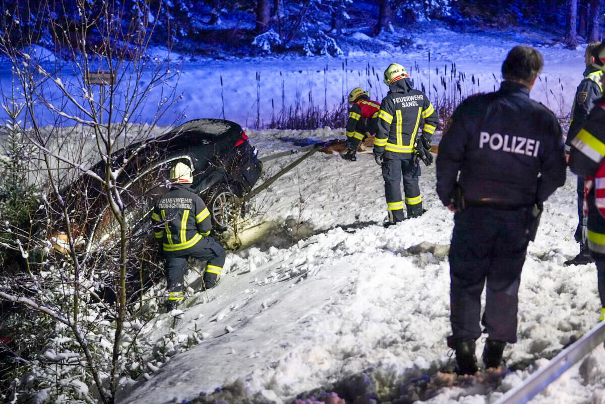 Kurz nach 17 Uhr dann der zweite Unfall: Ein Auto kam von der B38 ab und landete in einer steilen Böschung im Gebüsch, wo es gegen einen betonierten Wasserauffangbehälter prallte. Die Feuerwehren Sandl und Karlstift (NÖ) holten den Unfalllenker aus seinem Wagen, das Rote Kreuz brachte ihn ins Krankenhaus. „Im Anschluss wurde die Fahrzeugbergung mittels Seilwinde durchgeführt. Am Einsatz beteiligt waren die Feuerwehren Sandl, Gugu-Schönberg, Karlstift, Bad Großpertholz und Langschlag“, berichtet die FF Sandl.
