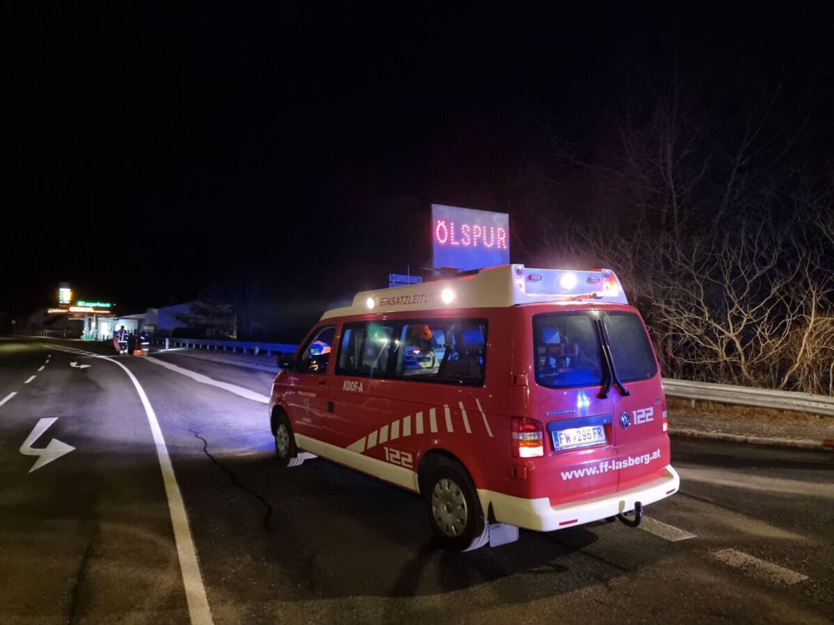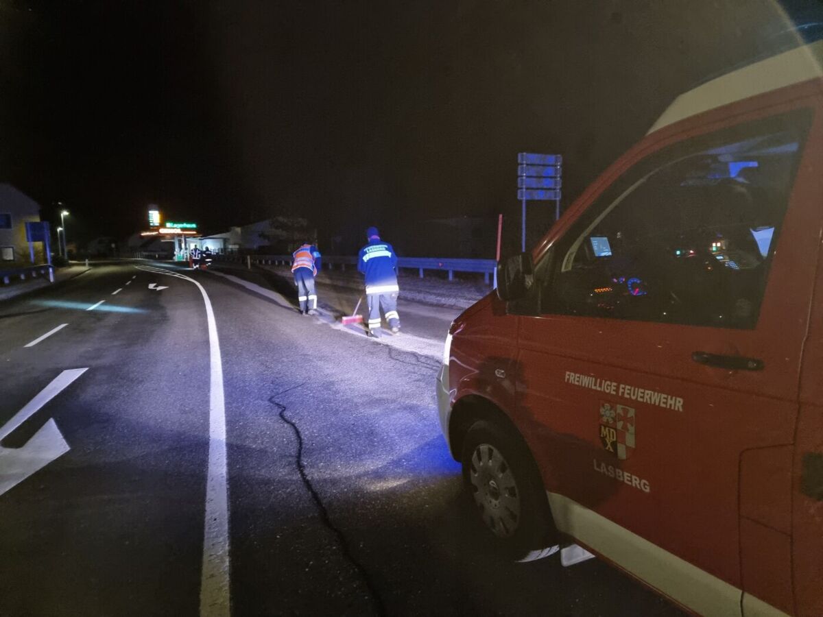 LASBERG. Eine zehn Kilometer lange Ölspur in Lasberg und St. Oswald beschäftigte Freitagabend zwei Feuerwehren.