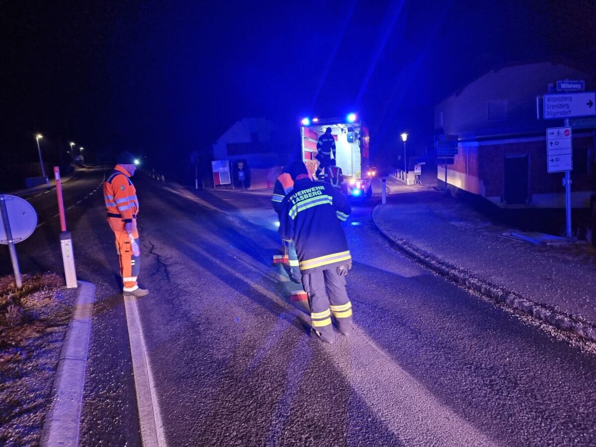 „Die Hydraulikspur, welche durch einen defekten Traktor verursacht wurde, erstreckte sich schließlich über sieben Kilometer auf Lasberger Gemeindegebiet und setzte sich danach in der Gemeinde St. Oswald fort. Die Gesamtlänge betrug über zehn Kilometer. Während der Binde- und Reinigungsarbeiten war die Straße teilweise für den Verkehr erschwert passierbar“, berichtet die Feuerwehr Lasberg. Ebenfalls im Einsatz: die Polizei und die Straßenmeistereien Freistadt und Pregarten.