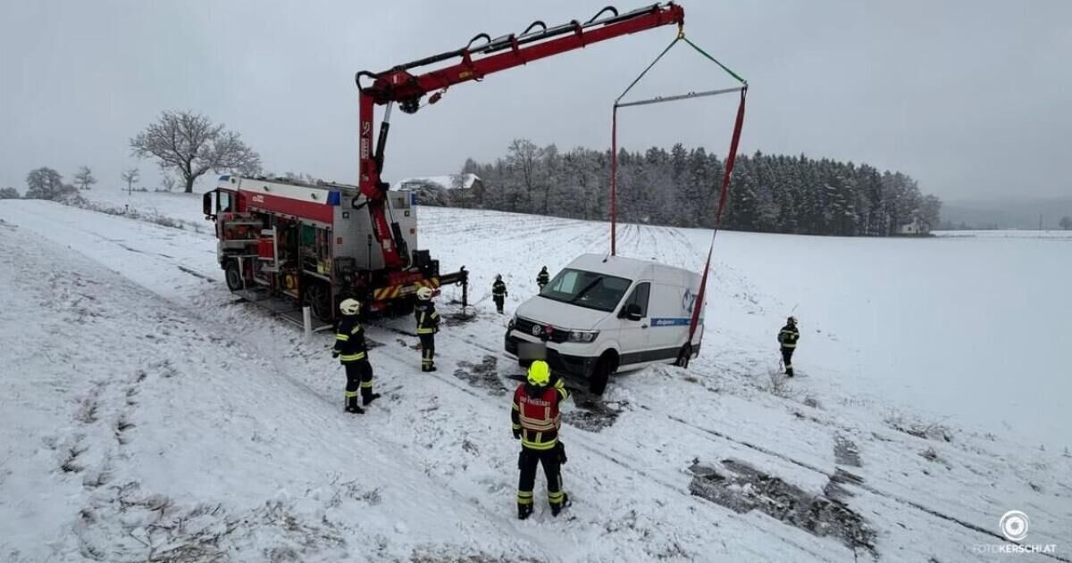 KEFERMARKT. Donnerstagvormittag barg die Feuerwehr Kefermarkt einen Kleintransporter, der aufgrund winterlicher Fahrverhältnisse von der Straße gerutscht war.