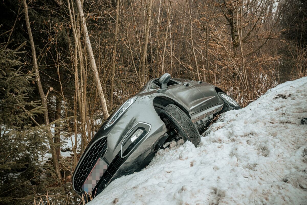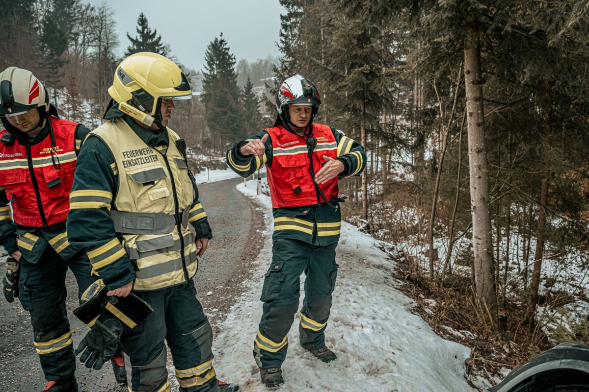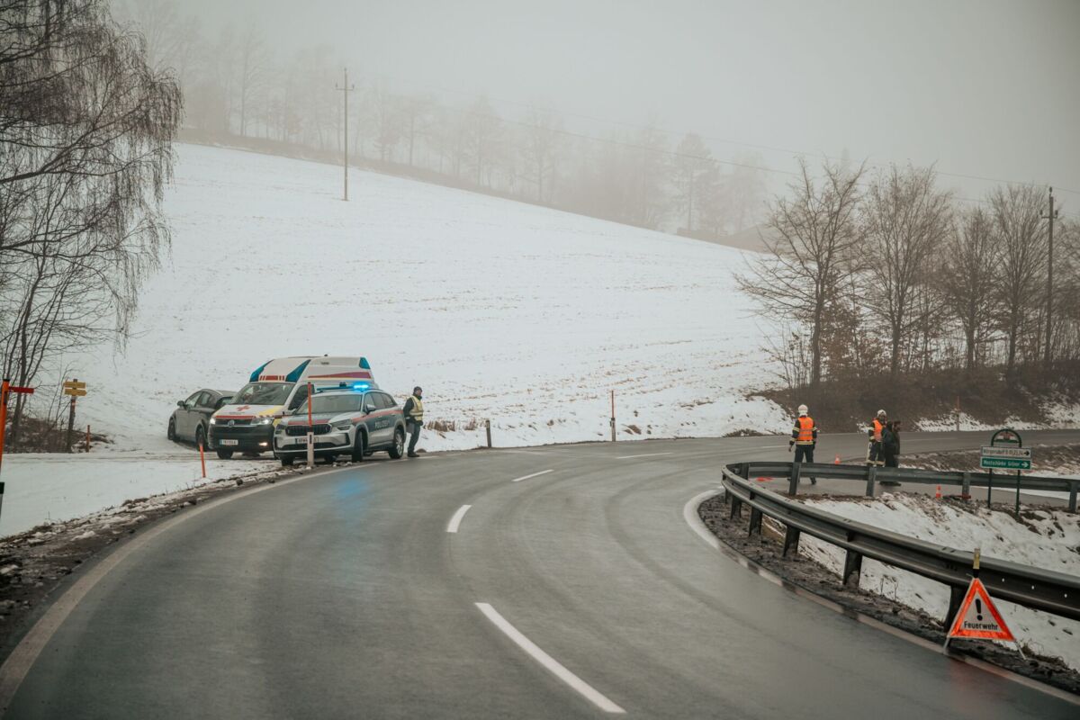 Am Sonntagmorgen ereignete sich auf der L1472 Gutauer Straße in Pregarten ein Verkehrsunfall. Auf spiegelglatter Fahrbahn geriet ein Pkw von der Straße ab und kam in einem Gebüsch an einem steilen Hang zum Stillstand.