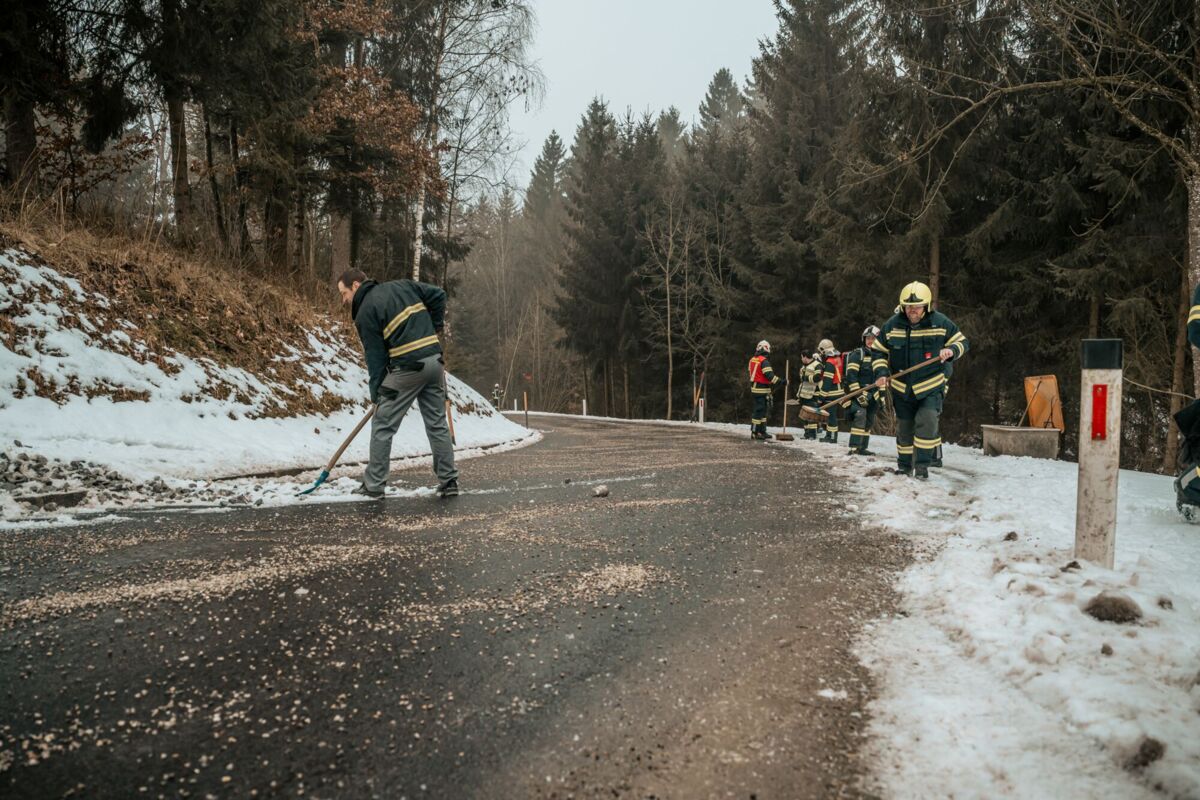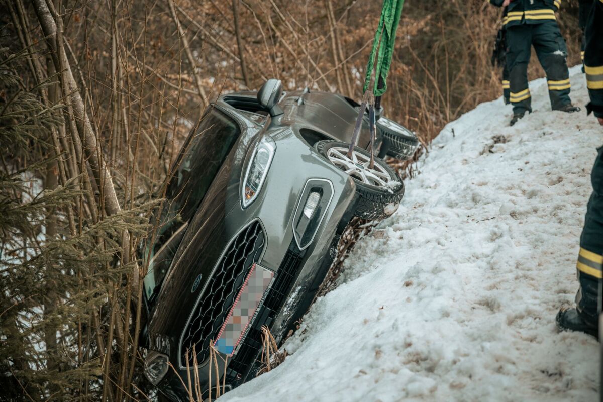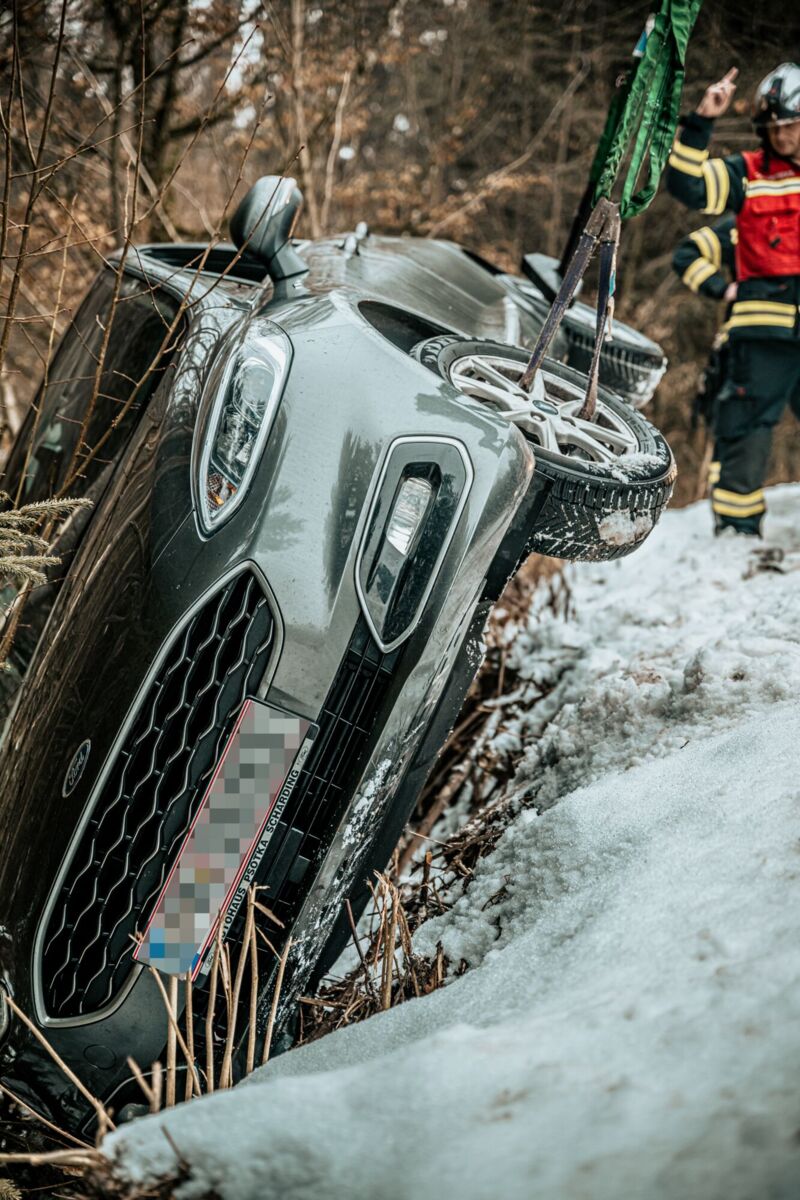 Pkw-Bergung nach Unfall auf glatter Fahrbahn bei Pregarten